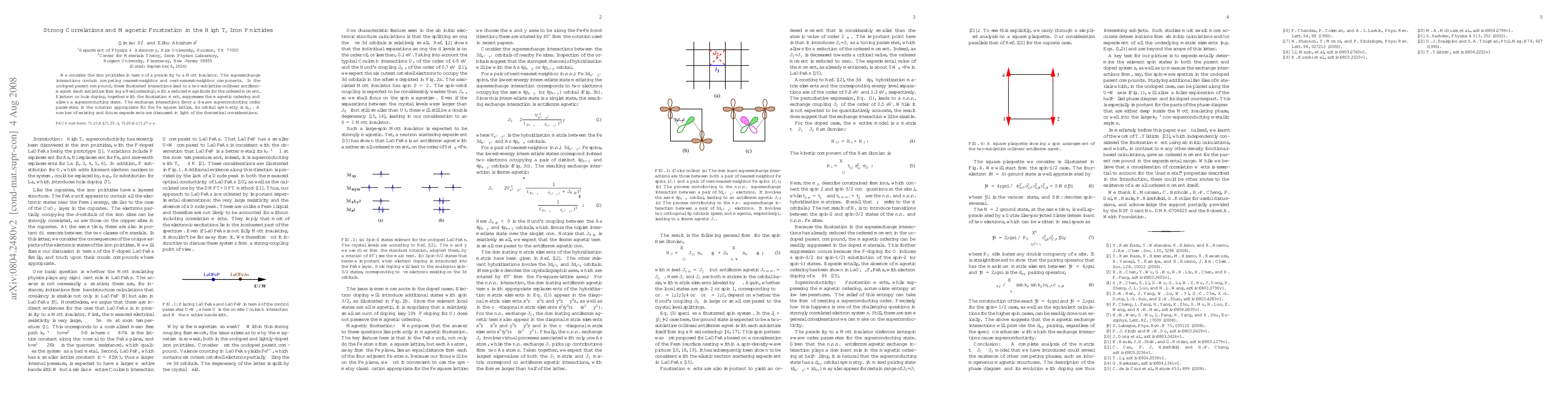 We consider the iron pnictides in terms of a proximity to a Mott insulator. The superexchange interactions contain competing nearest-neighbor and next-nearest-neighbor components. In the undoped parent compound, these frustrated interactions lead to a two-sublattice collinear antiferromagnet (each sublattice forming a Neel ordering), with a reduced magnitude for the ordered moment. Electron or hole doping, together with the frustration effect, suppresses the magnetic ordering and allows a superconducting state. The exchange interactions favor a d-wave superconducting order parameter; in the notation appropriate for the Fe square lattice, its orbital symmetry is $d_{xy}$. A number of existing and future experiments are discussed in light of the theoretical considerations.