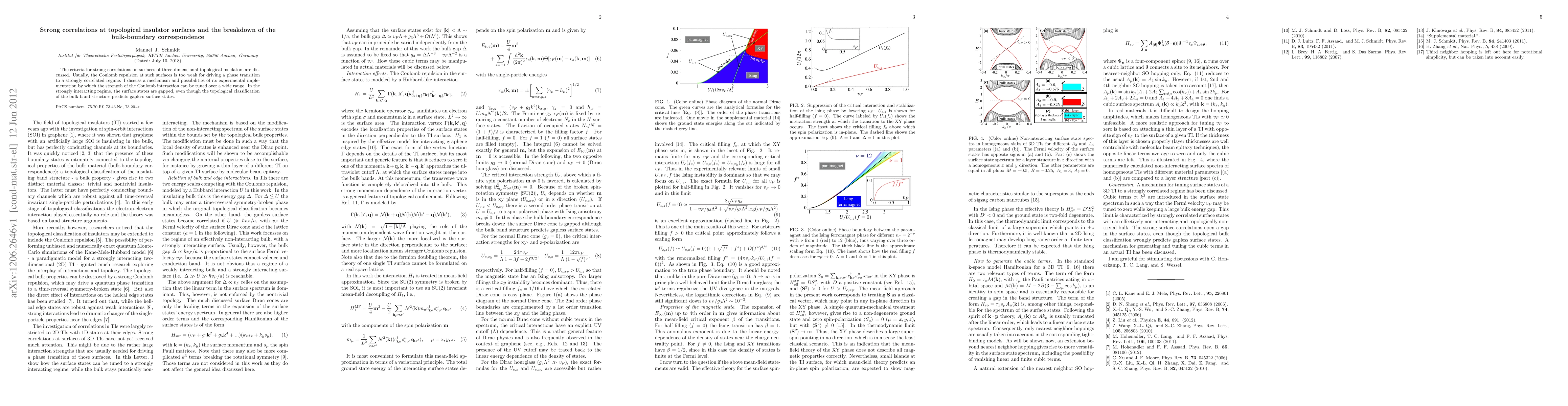The criteria for strong correlations on surfaces of three-dimensional topological insulators are discussed. Usually, the Coulomb repulsion at such surfaces is too weak for driving a phase transition to a strongly correlated regime. I discuss a mechanism and possibilities of its experimental implementation by which the strength of the Coulomb interaction can be tuned over a wide range. In the strongly interacting regime, the surface states are gapped, even though the topological classification of the bulk band structure predicts gapless surface states.