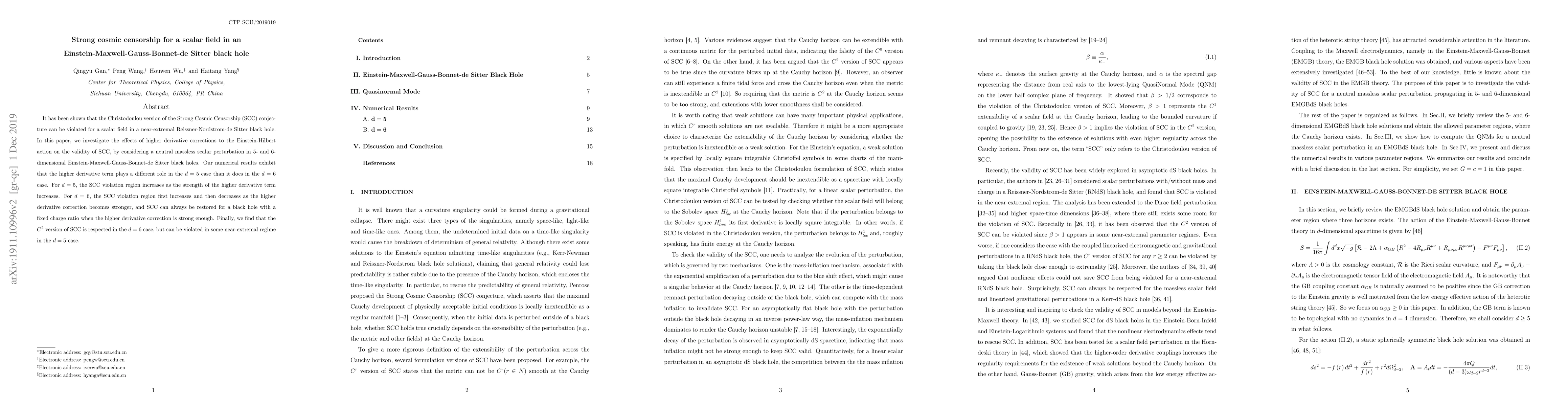 It has been shown that the Christodoulou version of the Strong Cosmic Censorship (SCC) conjecture can be violated for a scalar field in a near-extremal Reissner-Nordstrom-de Sitter black hole. In this paper, we investigate the effects of higher derivative corrections to the Einstein-Hilbert action on the validity of SCC, by considering a neutral massless scalar perturbation in 5- and 6-dimensional Einstein-Maxwell-Gauss-Bonnet-de Sitter black holes. Our numerical results exhibit that the higher derivative term plays a different role in the d = 5 case than it does in the d = 6 case. For d = 5, the SCC violation region increases as the strength of the higher derivative term increases. For d = 6, the SCC violation region first increases and then decreases as the higher derivative correction becomes stronger, and SCC can always be restored for a black hole with a fixed charge ratio when the higher derivative correction is strong enough. Finally, we find that the C2 version of SCC is respected in the d = 6 case, but can be violated in some near-extremal regime in the d = 5 case.