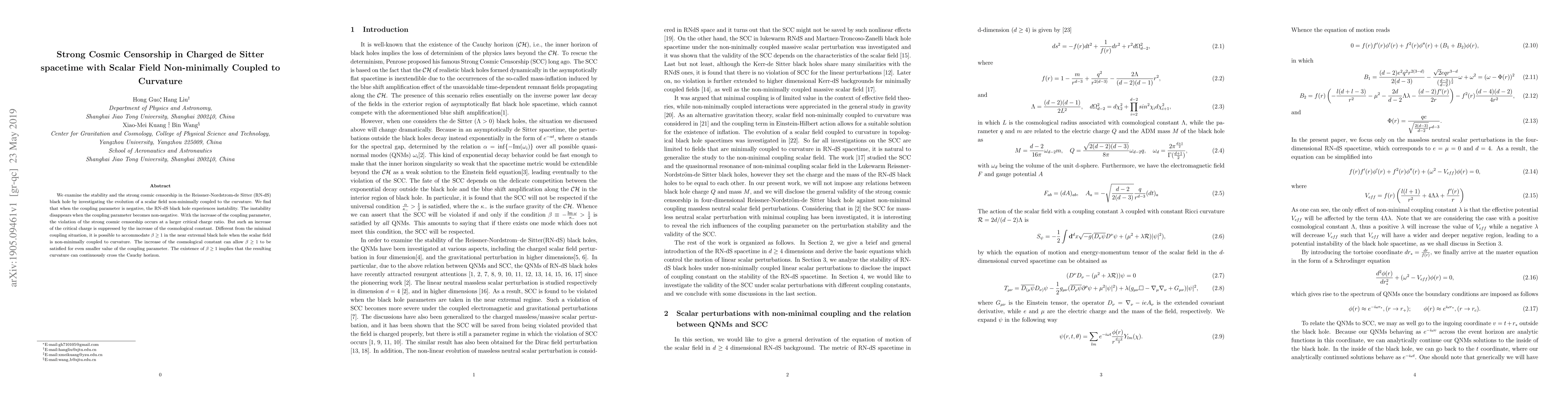 This paper investigates the strong cosmic censorship in Reissner-Nordstrom-de Sitter black holes with a scalar field non-minimally coupled to curvature, finding that negative coupling parameters cause instability, while non-negative values stabilize the system. The study reveals that increasing the coupling parameter raises the critical charge ratio for strong cosmic censorship violation, though this effect is mitigated by a higher cosmological constant.