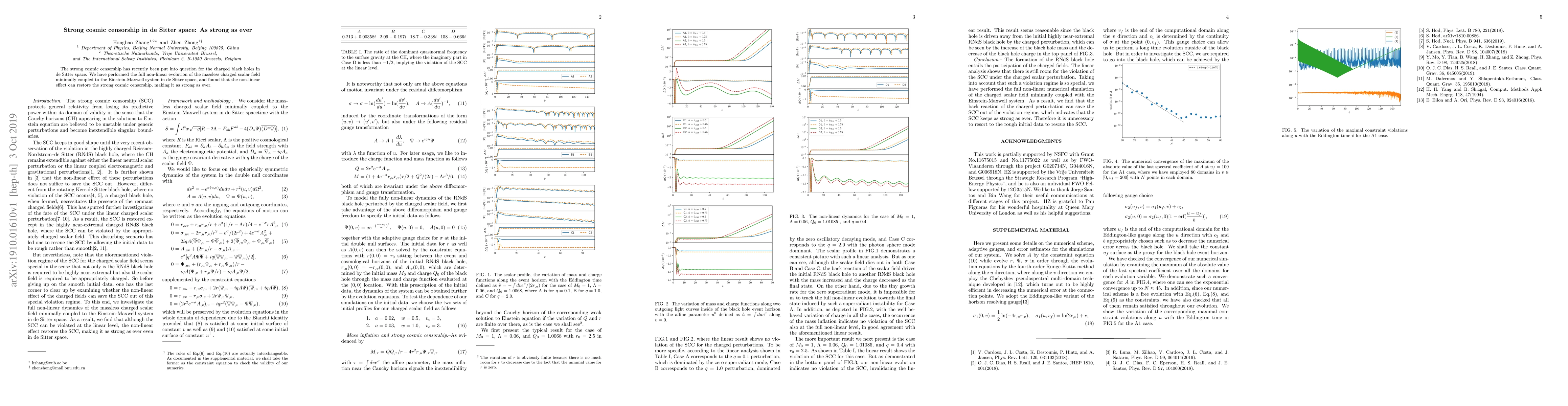 Summary: This study investigates the strong cosmic censorship in de Sitter space, finding that non-linear effects of a charged scalar field can restore the principle, reinforcing its validity. The full non-linear evolution confirms the robustness of strong cosmic censorship in this cosmological context.