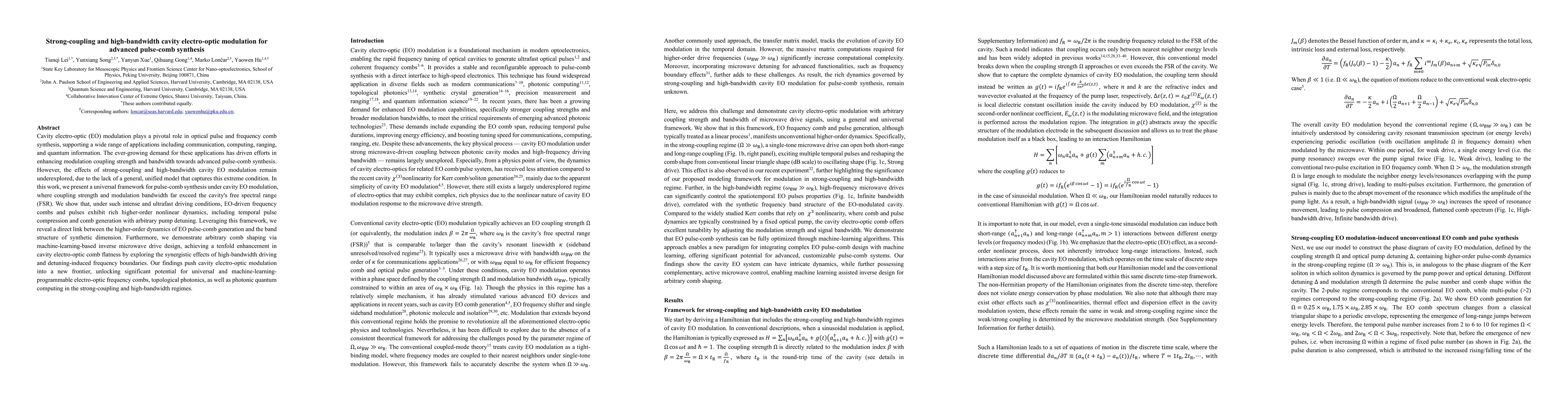 Cavity electro-optic (EO) modulation plays a pivotal role in optical pulse and frequency comb synthesis, supporting a wide range of applications including communication, computing, ranging, and quantum information. The ever-growing demand for these applications has driven efforts in enhancing modulation coupling strength and bandwidth towards advanced pulse-comb synthesis. However, the effects of strong-coupling and high-bandwidth cavity EO modulation remain underexplored, due to the lack of a general, unified model that captures this extreme condition. In this work, we present a universal framework for pulse-comb synthesis under cavity EO modulation, where coupling strength and modulation bandwidth far exceed the cavity's free spectral range (FSR). We show that, under such intense and ultrafast driving conditions, EO-driven frequency combs and pulses exhibit rich higher-order nonlinear dynamics, including temporal pulse compression and comb generation with arbitrary pump detuning. Leveraging this framework, we reveal a direct link between the higher-order dynamics of EO pulse-comb generation and the band structure of synthetic dimension. Furthermore, we demonstrate arbitrary comb shaping via machine-learning-based inverse microwave drive design, achieving a tenfold enhancement in cavity electro-optic comb flatness by exploring the synergistic effects of high-bandwidth driving and detuning-induced frequency boundaries. Our findings push cavity electro-optic modulation into a new frontier, unlocking significant potential for universal and machine-learning-programmable electro-optic frequency combs, topological photonics, as well as photonic quantum computing in the strong-coupling and high-bandwidth regimes.