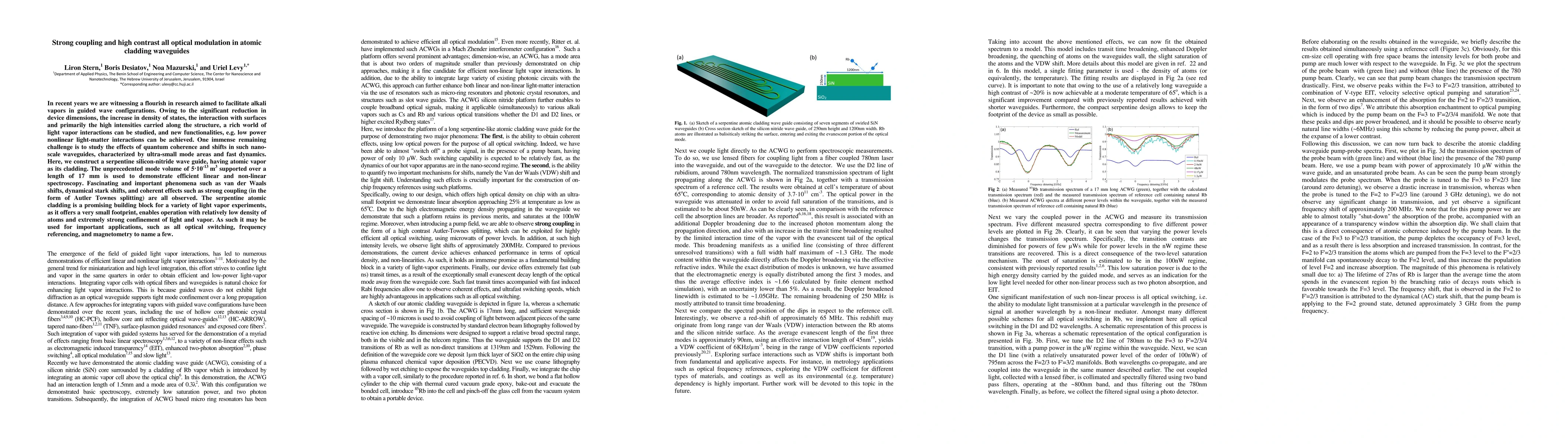 In recent years we are witnessing a flourish in research aimed to facilitate alkali vapors in guided wave configurations. Owing to the significant reduction in device dimensions, the increase in density of states, the interaction with surfaces and primarily the high intensities carried along the structure, a rich world of light vapor interactions can be studied, and new functionalities, e.g. low power nonlinear light-matter interactions can be achieved. One immense remaining challenge is to study the effects of quantum coherence and shifts in such nano-scale waveguides, characterized by ultra-small mode areas and fast dynamics. Here, we construct a serpentine silicon-nitride wave guide, having atomic vapor as its cladding. The unprecedented mode volume of 5e-13 m^3 supported over a length of 17 mm is used to demonstrate efficient linear and non-linear spectroscopy. Fascinating and important phenomena such as van der Waals shifts, dynamical stark shifts, and coherent effects such as strong coupling (in the form of Autler Townes splitting) are all observed. The serpentine atomic cladding is a promising building block for a variety of light vapor experiments, as it offers a very small footprint, enables operation with relatively low density of atoms and extremely strong confinement of light and vapor. As such it may be used for important applications, such as all optical switching, frequency referencing, and magnetometry to name a few.