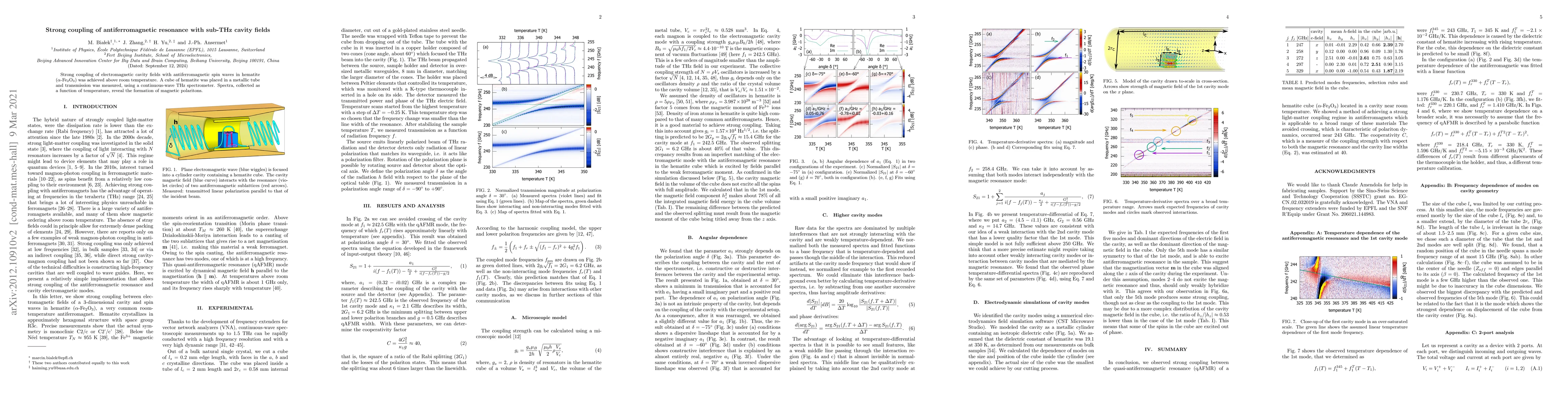 Researchers achieved strong coupling of antiferromagnetic spin waves with THz cavity fields in hematite above room temperature, revealing magnetic polaritons through transmission measurements.