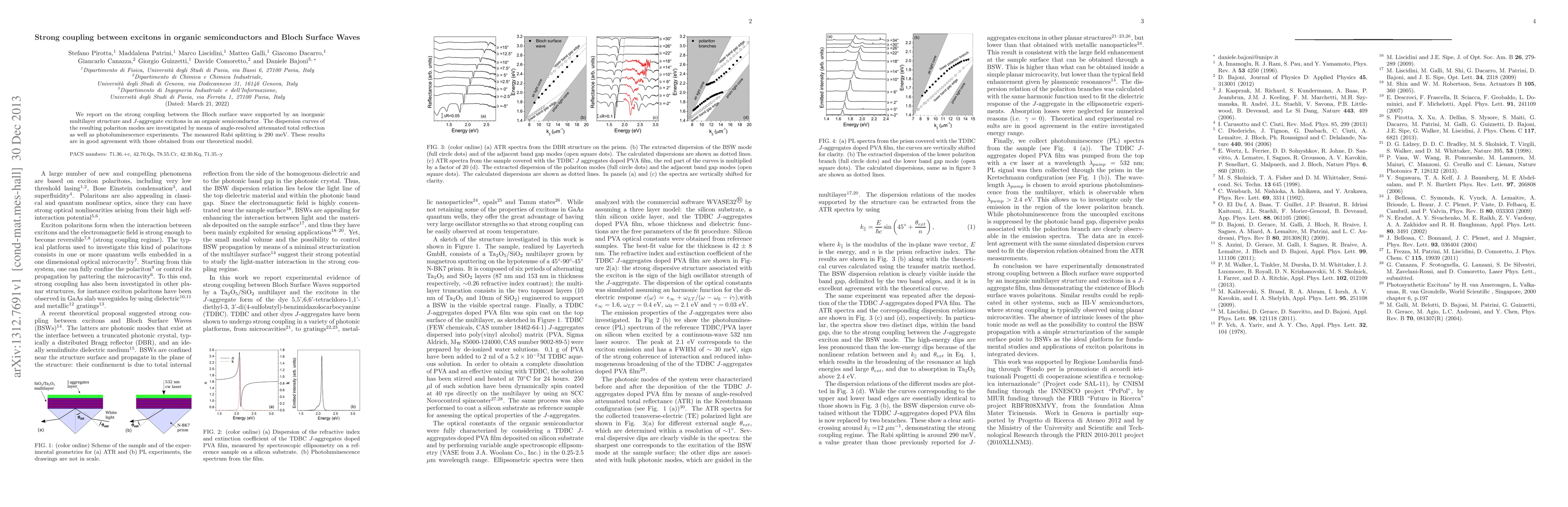 This paper investigates the strong coupling between $J$-aggregate excitons in organic semiconductors and Bloch surface waves in an inorganic multilayer structure, demonstrating a Rabi splitting of 290 meV. Theoretical models align well with experimental observations from angle-resolved attenuated total reflection and photoluminescence studies.