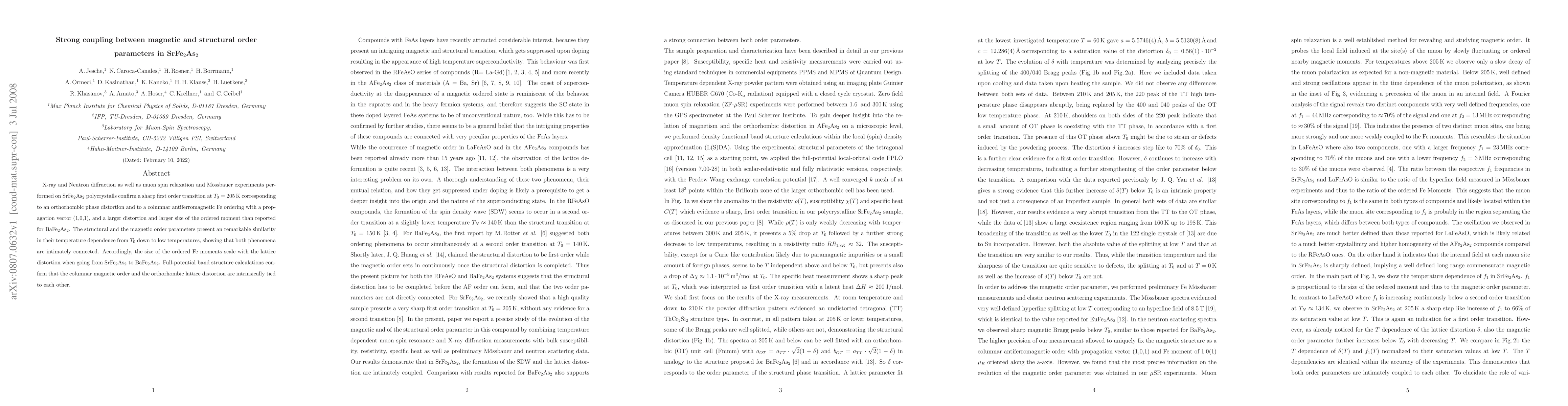 X-ray and Neutron diffraction as well as muon spin relaxation and M\"ossbauer experiments performed on SrFe$_2$As$_2$ polycrystalls confirm a sharp first order transition at $T_0 = 205$,K corresponding to an orthorhombic phase distortion and to a columnar antiferromagnetic Fe ordering with a propagation vector (1,0,1), and a larger distortion and larger size of the ordered moment than reported for BaFe$_2$As$_2$. The structural and the magnetic order parameters present an remarkable similarity in their temperature dependence from $T_0$ down to low temperatures, showing that both phenomena are intimately connected. Accordingly, the size of the ordered Fe moments scale with the lattice distortion when going from SrFe$_2$As$_2$ to BaFe$_2$As$_2$. Full-potential band structure calculations confirm that the columnar magnetic order and the orthorhombic lattice distortion are intrinsically tied to each other.