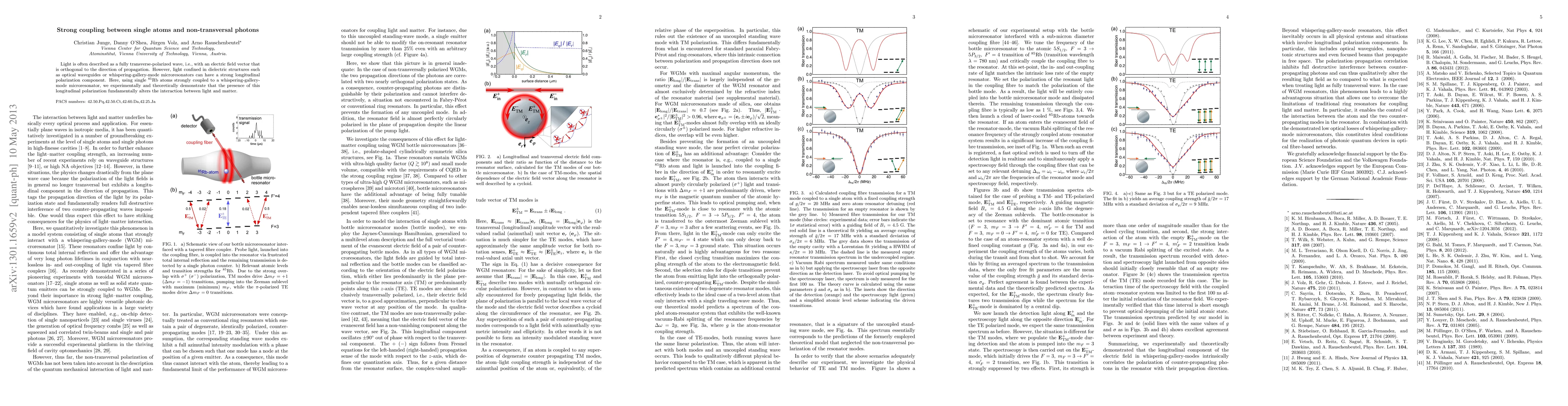 We investigate the interaction between single quantum emitters and non-transversally polarised photons for which the electric field vector amplitude has a significant component in the direction of propagation. Even though this situation seems to be at odds with the description of light as a transverse wave, it regularly occurs when interfacing or manipulating emitters with non-paraxial, guided, or evanescent light. Here, we couple single rubidium atoms to single photons which are confined in an optical microresonator by continuous total internal reflection. We experimentally show that the non-transversal polarisation decisively alters the physics of strong light--matter interaction. This effect has far-reaching and highly advantageous implications, which, e.g., significantly advance the field of cavity quantum electrodynamics with whispering-gallery-mode resonators. In particular, our finding allows us to experimentally realise a paradigmatic quantum system, which is ideally suited for basic studies and technological applications.