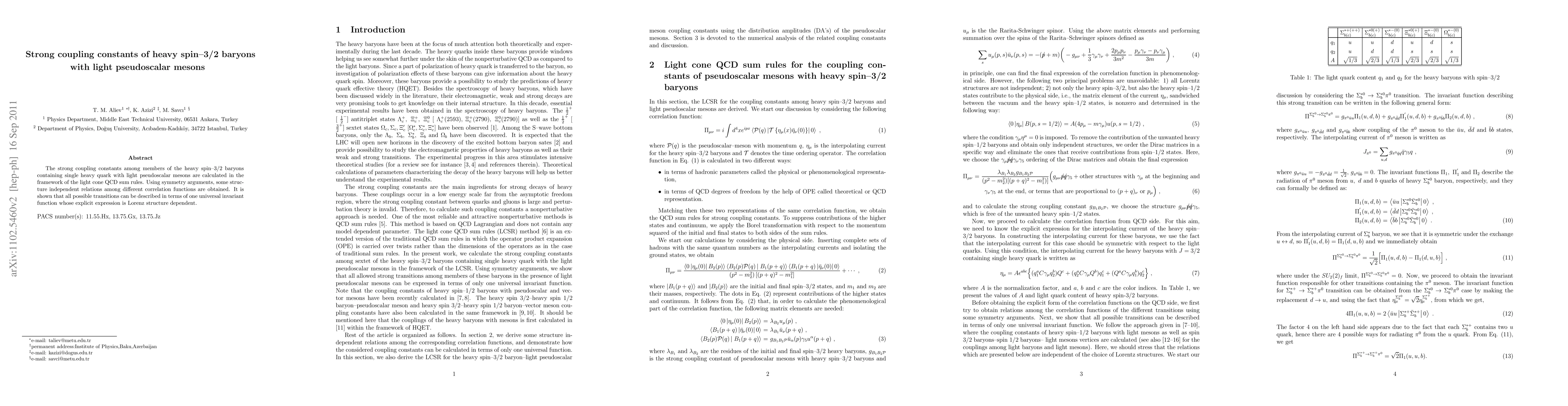 This paper calculates strong coupling constants for heavy spin-3/2 baryons with light pseudoscalar mesons using light cone QCD sum rules, revealing a universal invariant function describing all possible transitions, independent of the specific structure.