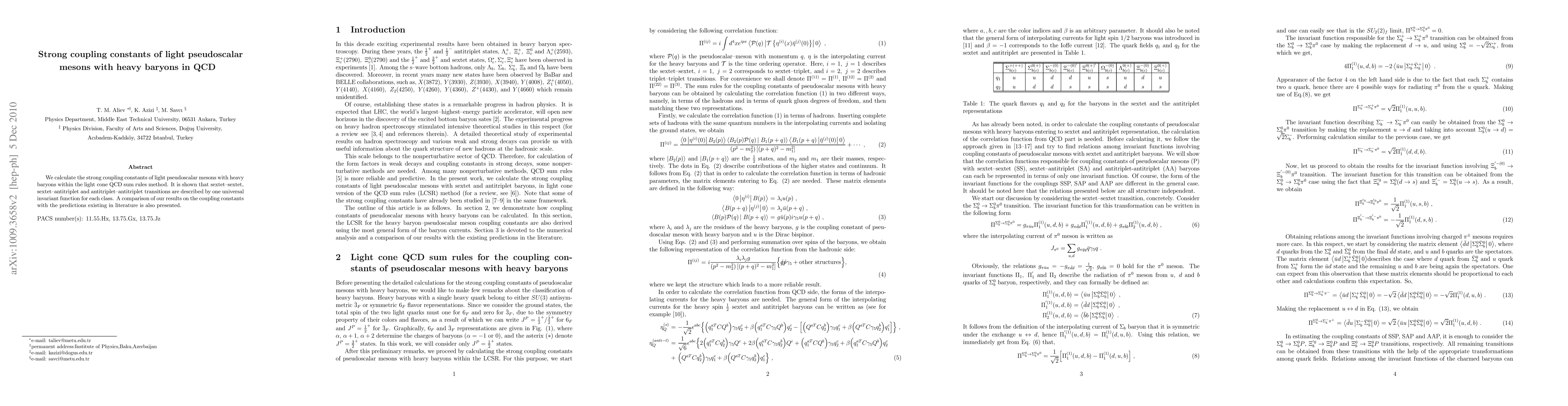 This paper calculates strong coupling constants between light pseudoscalar mesons and heavy baryons using light cone QCD sum rules, revealing universal invariant functions for different transitions, and compares these findings with existing literature predictions.