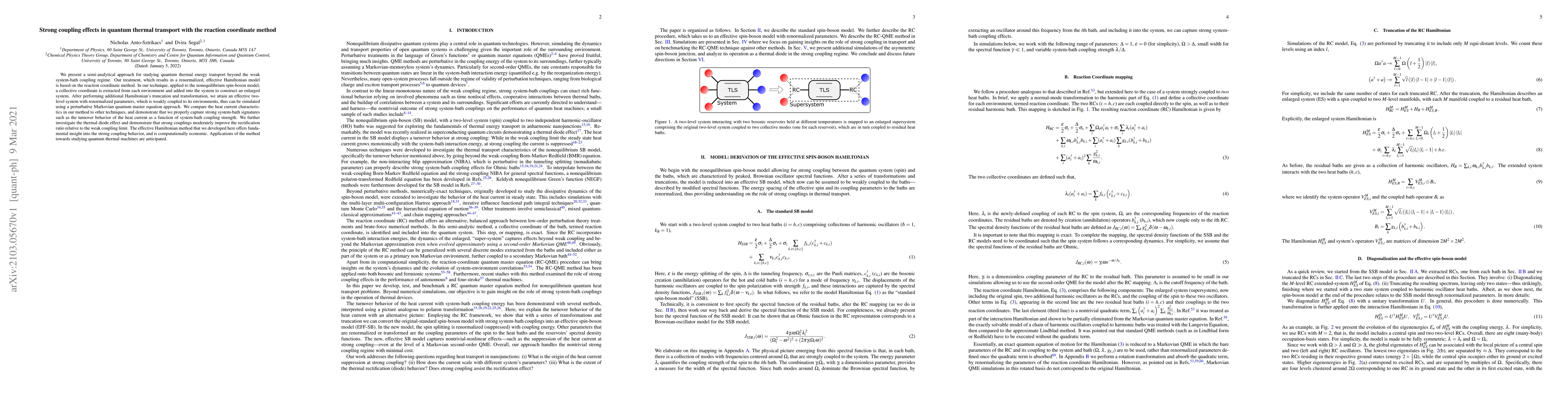 This paper introduces a semi-analytical approach for studying quantum thermal transport in systems with strong coupling, using the reaction coordinate method to develop a renormalized effective Hamiltonian. The method captures strong coupling signatures and improves computational efficiency, offering insights into thermal diode effects and potential applications in quantum thermal machines.