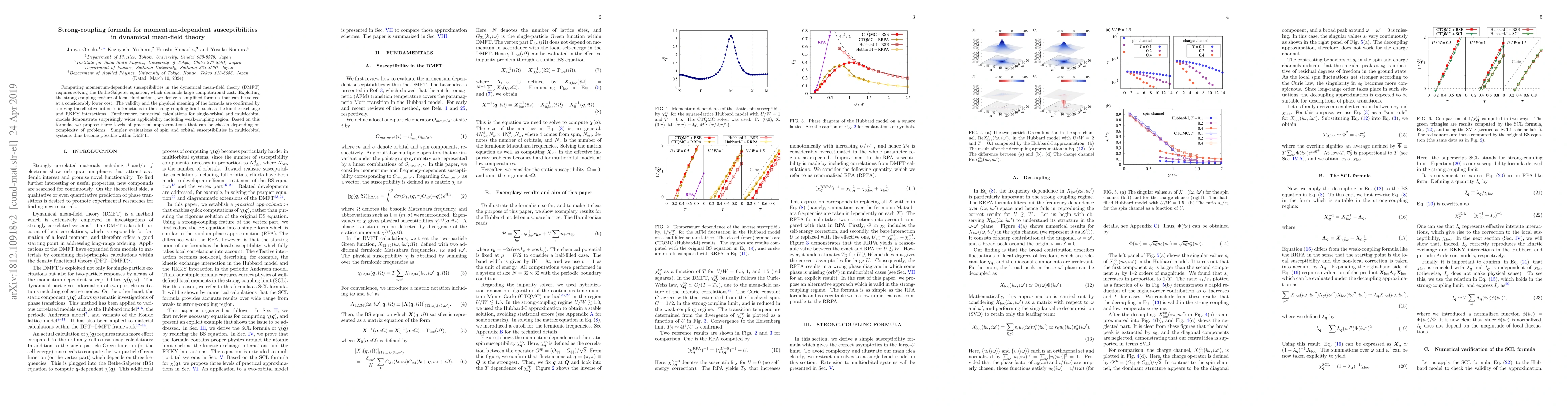 This paper presents a simplified formula for computing momentum-dependent susceptibilities in dynamical mean-field theory, leveraging strong-coupling features to reduce computational costs. The formula's validity and applicability are demonstrated through effective intersite interactions and numerical calculations, proposing practical approximations for spin and orbital susceptibilities in multiorbital systems.