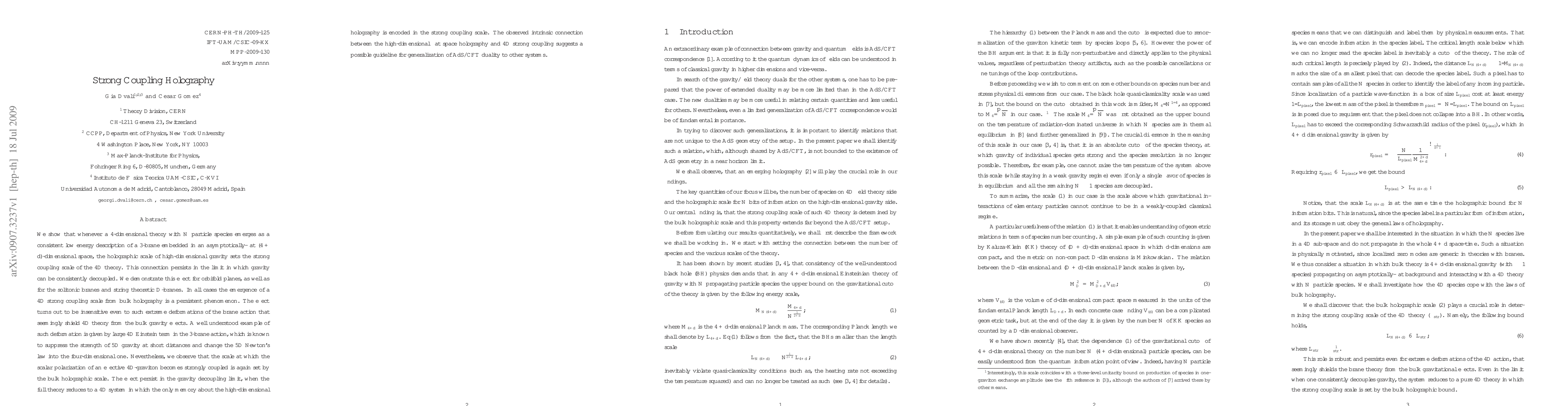 We show that whenever a 4-dimensional theory with N particle species emerges as a consistent low energy description of a 3-brane embedded in an asymptotically-flat (4+d)-dimensional space, the holographic scale of high-dimensional gravity sets the strong coupling scale of the 4D theory. This connection persists in the limit in which gravity can be consistently decoupled. We demonstrate this effect for orbifold planes, as well as for the solitonic branes and string theoretic D-branes. In all cases the emergence of a 4D strong coupling scale from bulk holography is a persistent phenomenon. The effect turns out to be insensitive even to such extreme deformations of the brane action that seemingly shield 4D theory from the bulk gravity effects. A well understood example of such deformation is given by large 4D Einstein term in the 3-brane action, which is known to suppress the strength of 5D gravity at short distances and change the 5D Newton's law into the four-dimensional one. Nevertheless, we observe that the scale at which the scalar polarization of an effective 4D-graviton becomes strongly coupled is again set by the bulk holographic scale. The effect persist in the gravity decoupling limit, when the full theory reduces to a 4D system in which the only memory about the high-dimensional holography is encoded in the strong coupling scale. The observed intrinsic connection between the high-dimensional flat space holography and 4D strong coupling suggests a possible guideline for generalization of AdS/CFT duality to other systems.