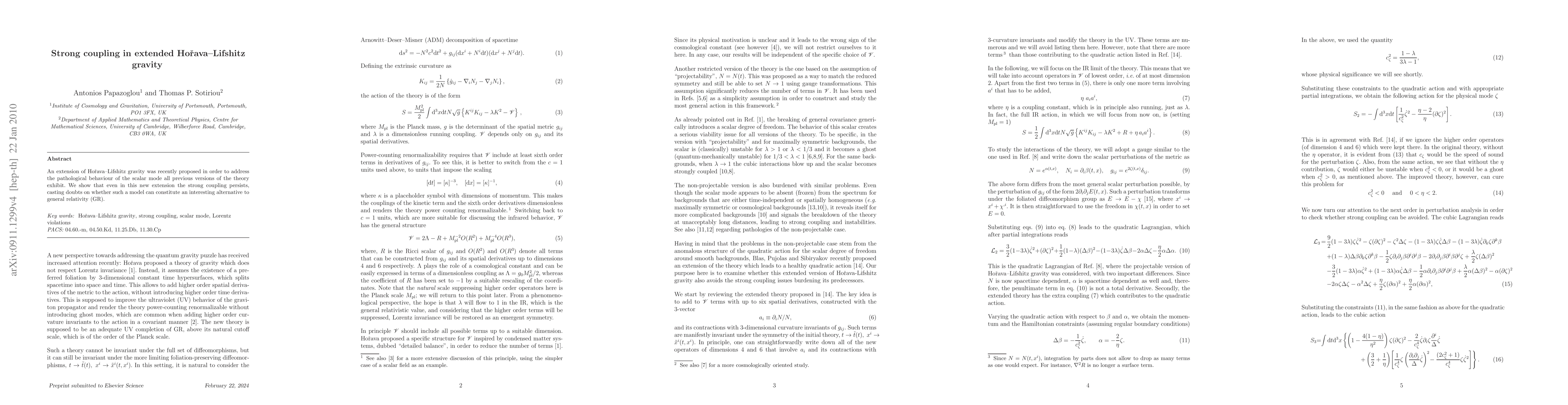 This paper investigates an extended version of Horava-Lifshitz gravity to address its scalar mode issues but finds that strong coupling remains, undermining its potential as an alternative to general relativity.