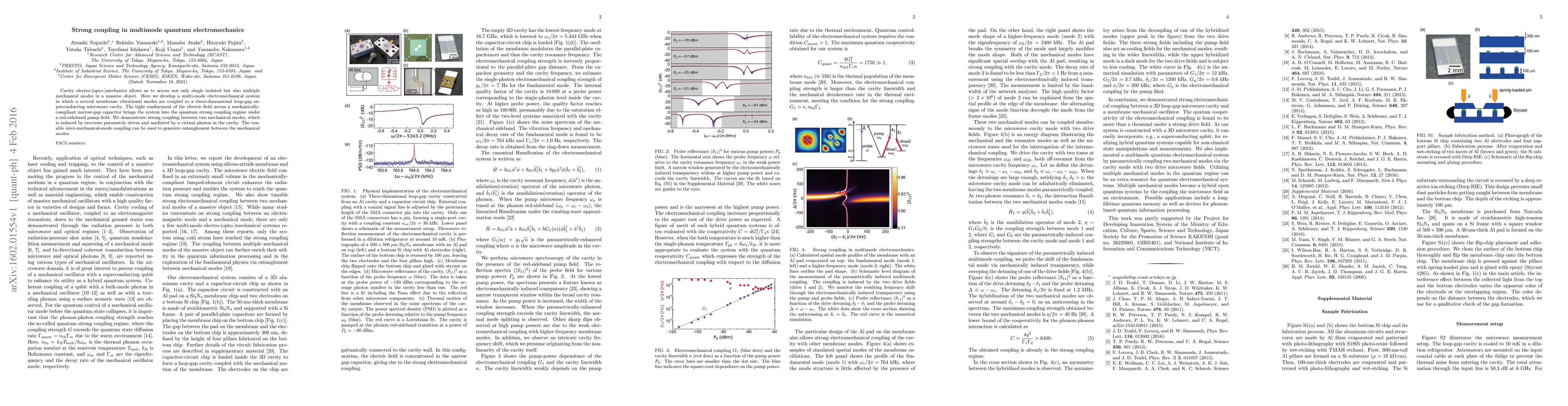 This paper develops a multi-mode electromechanical system coupling several membrane vibrational modes to a superconducting microwave cavity, achieving strong coupling in the quantum regime. It demonstrates strong coupling between two mechanical modes via two-tone parametric drives and tunable inter-mechanical-mode coupling for generating entanglement.