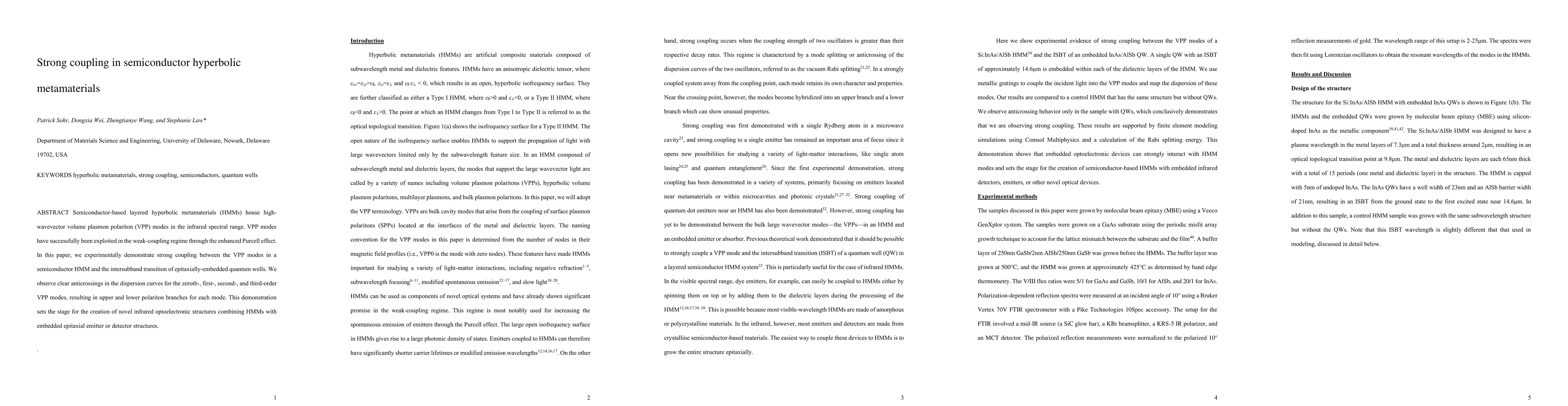 The paper presents an experimental demonstration of strong coupling between VPP modes in semiconductor HMMs and QW ISBT, supported by Rabi splitting calculations, and discusses the implications for infrared optoelectronic devices.