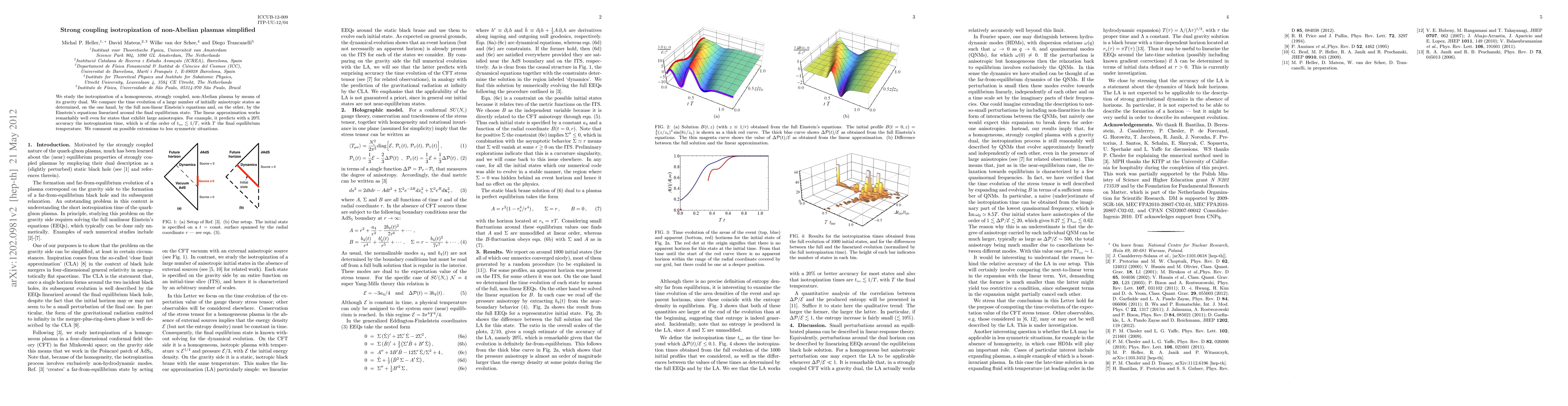 This paper investigates the isotropization of strongly coupled, non-Abelian plasmas using their gravity dual, finding that linear approximations to Einstein's equations accurately predict the isotropization time for initially anisotropic states, even with large anisotropies. The study suggests potential applications to less symmetric scenarios.
