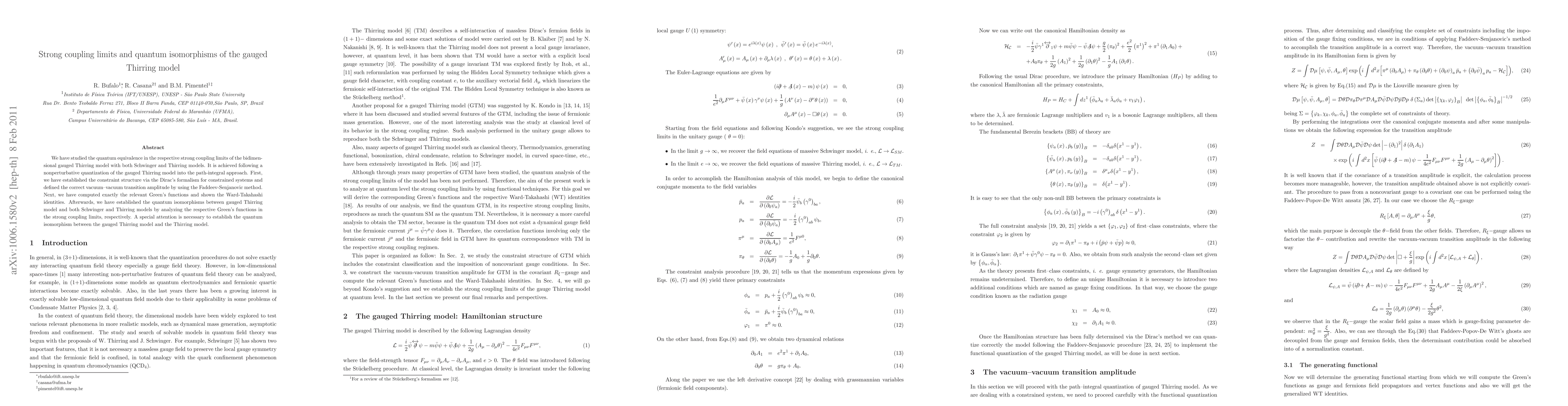 This paper explores the quantum equivalence of the bidimensional gauged Thirring model with the Schwinger and Thirring models in their strong coupling limits through a nonperturbative quantization approach. It establishes quantum isomorphisms by analyzing Green's functions and Ward-Takahashi identities, with particular focus on the complex relationship between the gauged Thirring model and the Thirring model.