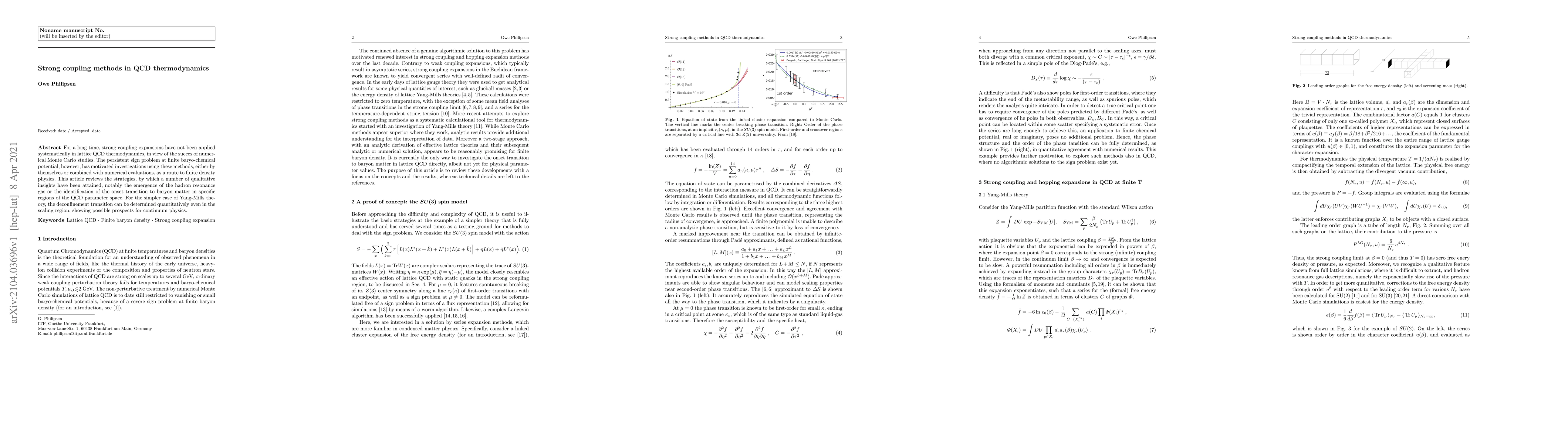 This paper reviews strong coupling methods applied to lattice QCD thermodynamics, highlighting qualitative insights like hadron resonance gas emergence and baryon matter transition, motivated by the persistent sign problem. It also demonstrates the quantitative determination of the deconfinement transition in Yang-Mills theory, suggesting potential for continuum physics applications.