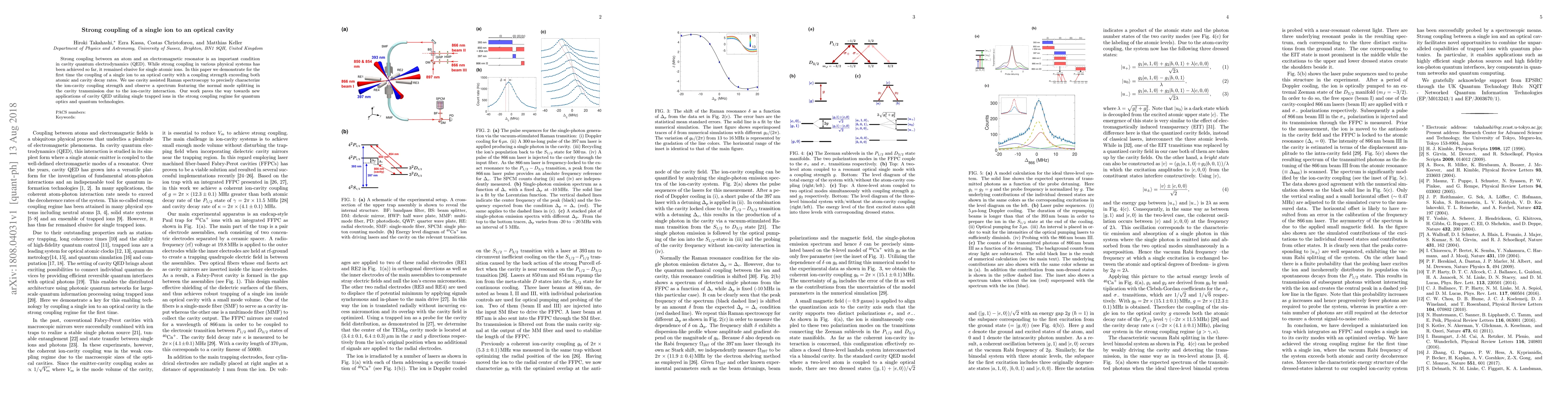 This paper demonstrates the first successful strong coupling of a single atomic ion to an optical cavity, exceeding both atomic and cavity decay rates, using cavity-assisted Raman spectroscopy. This achievement opens new avenues for quantum optics and quantum technologies using trapped ions in the strong coupling regime.