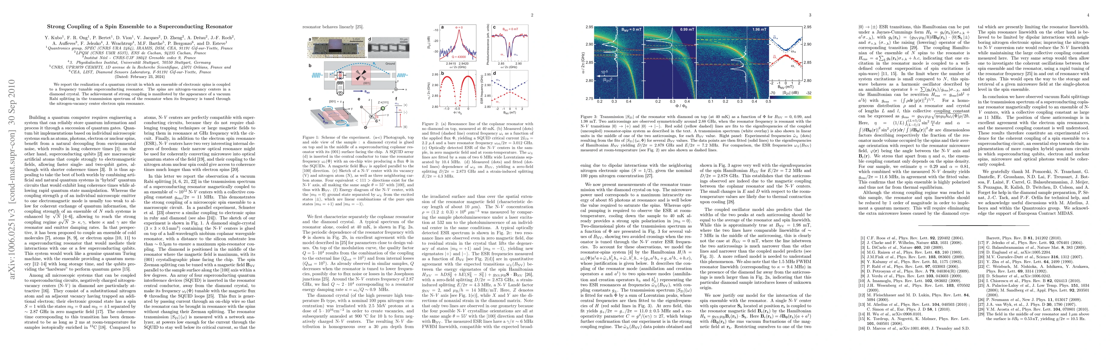 This paper demonstrates the strong coupling of a spin ensemble of Nitrogen-Vacancy centers in a diamond to a tunable superconducting resonator, evidenced by vacuum Rabi splitting in the resonator's transmission spectrum.