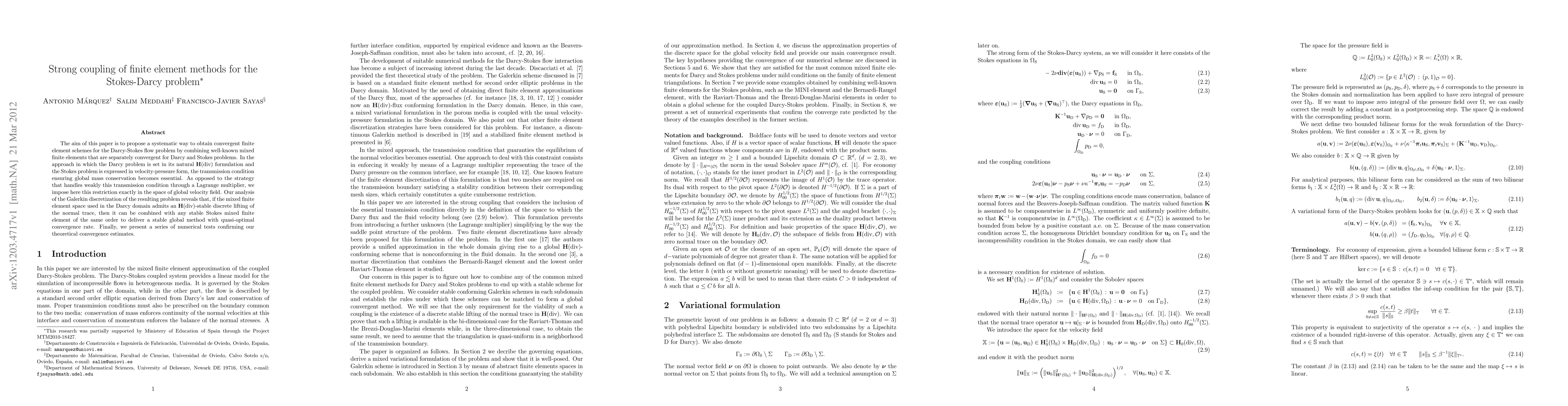 This paper proposes a method to develop convergent finite element schemes for the Darcy-Stokes flow problem by combining mixed finite elements for Darcy and Stokes problems, ensuring exact global mass conservation through a transmission condition. The analysis shows that stable global convergence can be achieved if the Darcy domain's finite element space allows for an $\mathbf{H}(\text{div})$-stable discrete lifting of the normal trace.