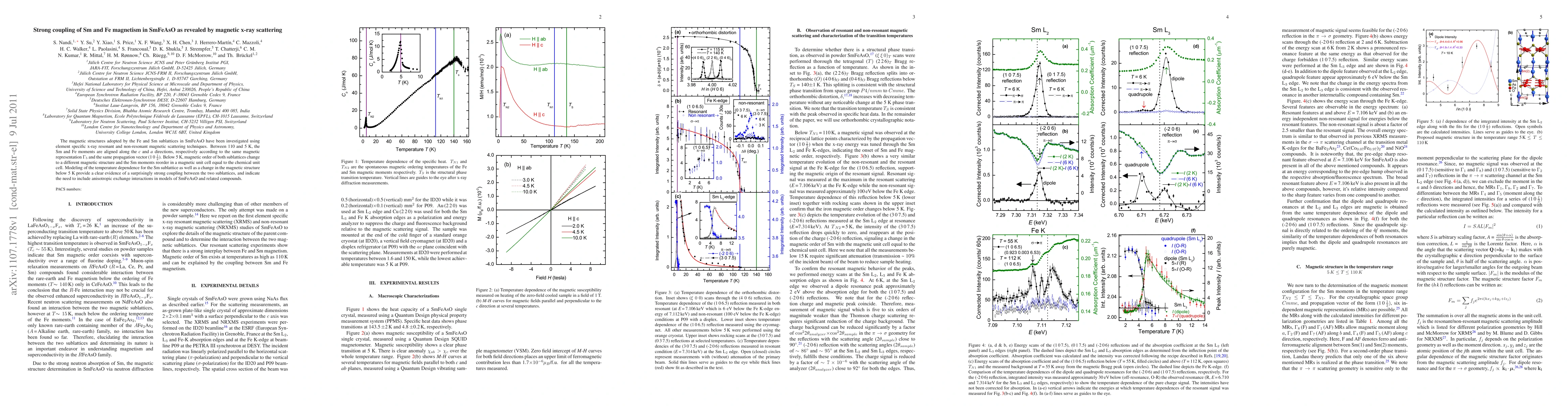 This study reveals strong coupling between Sm and Fe magnetism in SmFeAsO through magnetic x-ray scattering, showing that both moments align along specific directions and undergo a structural change below 5 K, indicating the necessity of anisotropic exchange interactions in models for these materials.