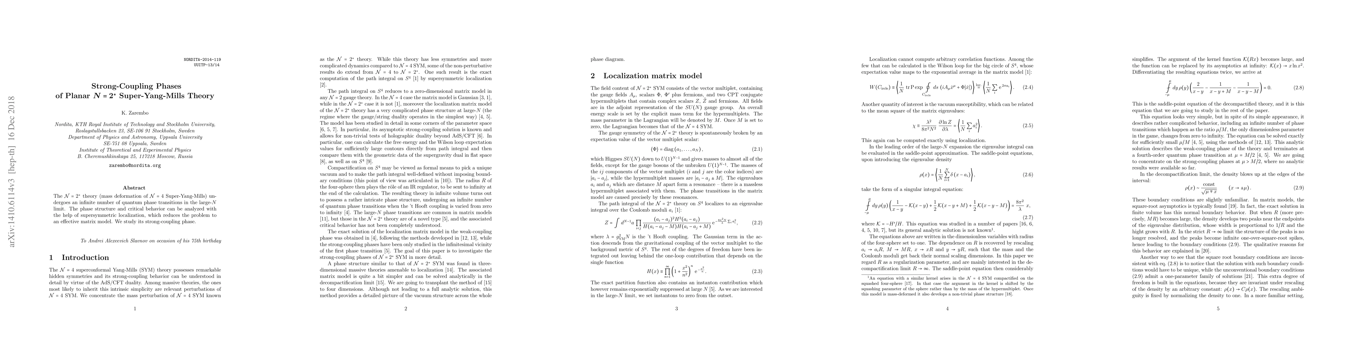 The N=2* theory (mass deformation of N=4 Super-Yang-Mills) undergoes an infinite number of quantum phase transitions in the large-N limit. The phase structure and critical behavior can be analyzed with the help of supersymmetric localization, which reduces the problem to an effective matrix model. We study its strong-coupling phase.