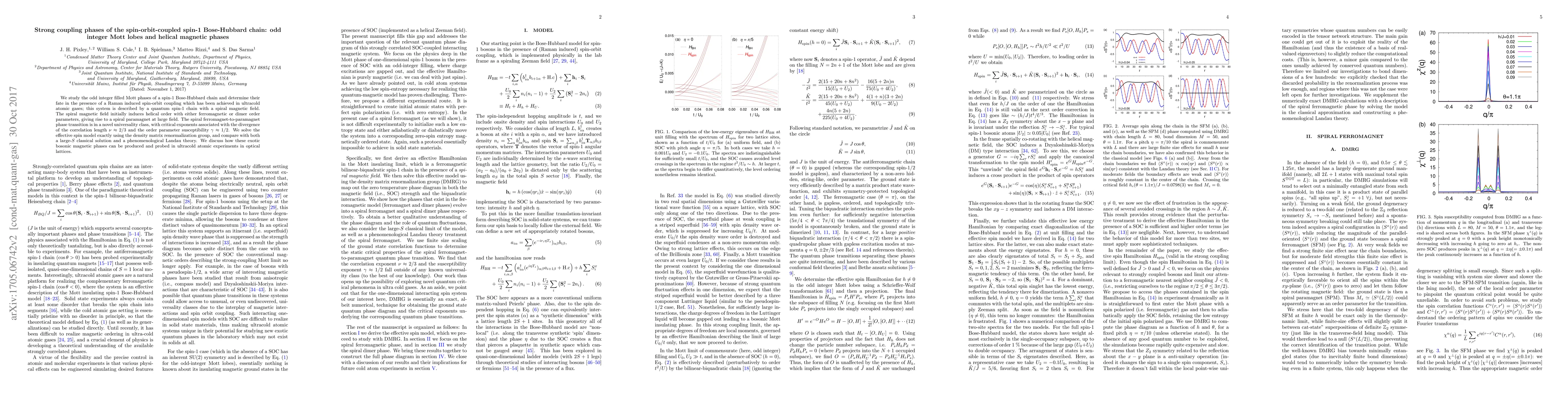 We study the odd integer filled Mott phases of a spin-1 Bose-Hubbard chain and determine their fate in the presence of a Raman induced spin-orbit coupling which has been achieved in ultracold atomic gases; this system is described by a quantum spin-1 chain with a spiral magnetic field. The spiral magnetic field initially induces helical order with either ferromagnetic or dimer order parameters, giving rise to a spiral paramagnet at large field. The spiral ferromagnet-to-paramagnet phase transition is in a novel universality class, with critical exponents associated with the divergence of the correlation length $\nu \approx 2/3$ and the order parameter susceptibility $\gamma \approx 1/2$. We solve the effective spin model exactly using the density matrix renormalization group, and compare with both a large-$S$ classical solution and a phenomenological Landau theory. We discuss how these exotic bosonic magnetic phases can be produced and probed in ultracold atomic experiments in optical lattices.