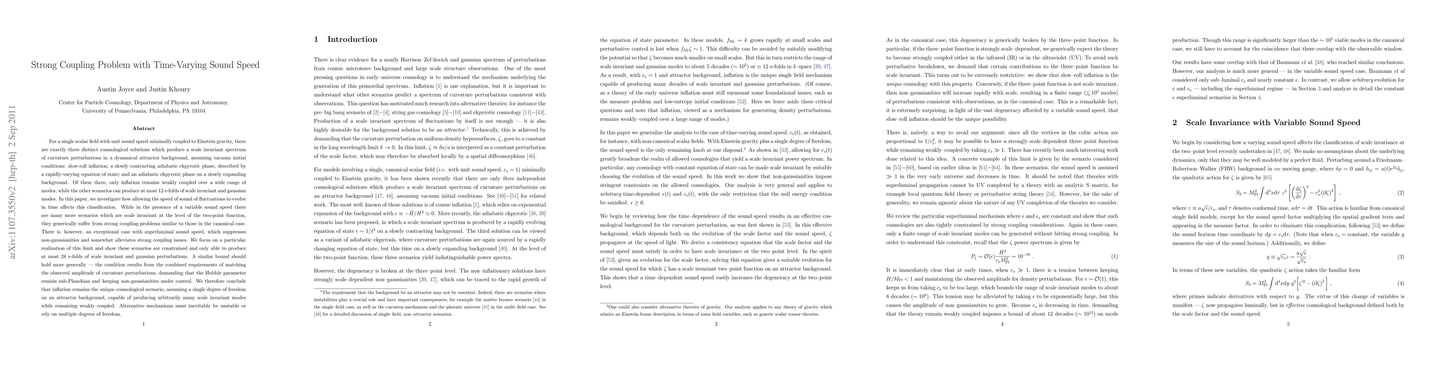 For a single scalar field with unit sound speed minimally coupled to Einstein gravity, there are exactly three distinct cosmological solutions which produce a scale invariant spectrum of curvature perturbations in a dynamical attractor background, assuming vacuum initial conditions: slow-roll inflation; a slowly contracting adiabatic ekpyrotic phase, described by a rapidly-varying equation of state; and an adiabatic ekpyrotic phase on a slowly expanding background. Of these three, only inflation remains weakly coupled over a wide range of modes, the other scenarios can produce at most 12 e-folds of scale invariant and gaussian modes. In this paper, we investigate how allowing the speed of sound of fluctuations to evolve in time affects this classification. While in the presence of a variable sound speed there are many more scenarios which are scale invariant at the level of the two-point function, they generically suffer from strong coupling problems similar to those in the canonical case. There is, however, an exceptional case with superluminal sound speed, which suppresses non-gaussianities and somewhat alleviates strong coupling issues. We focus on a particular realization of this limit and show these scenarios are constrained and only able to produce at most 28 e-folds of scale invariant and gaussian perturbations. A similar bound should hold more generally --- the condition results from the combined requirements of matching the observed amplitude of curvature perturbations, demanding that the Hubble parameter remain sub-Planckian and keeping non-gaussianities under control. We therefore conclude that inflation remains the unique scenario, assuming a single degree of freedom on an attractor background, capable of producing arbitrarily many scale invariant modes while remaining weakly coupled. Alternative mechanisms must inevitably be unstable or rely on multiple degrees of freedom.