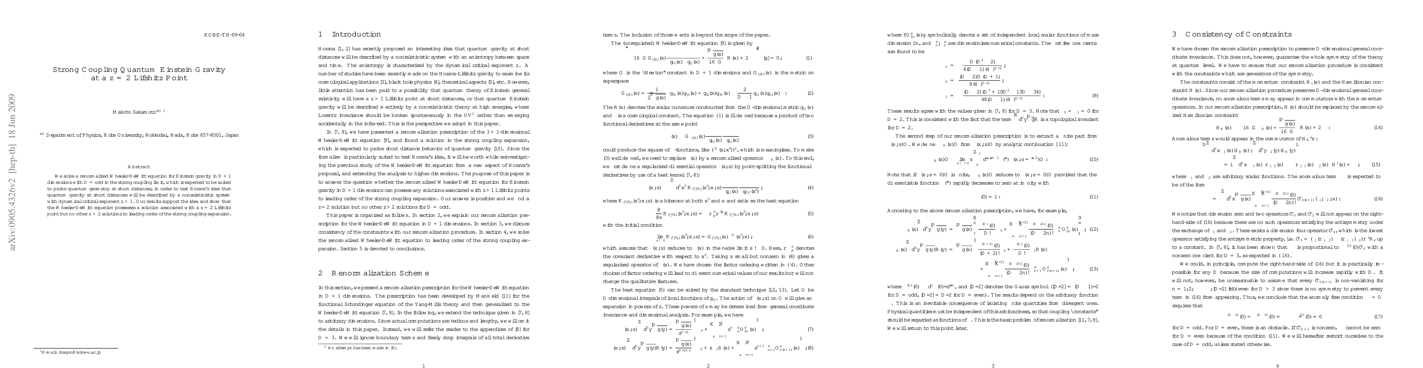 This paper investigates quantum Einstein gravity in the strong coupling limit, confirming Horava's hypothesis that quantum gravity exhibits a nonrelativistic description with a z=2 Lifshitz point. The study finds a solution to the renormalized Wheeler-DeWitt equation supporting this nonrelativistic framework.