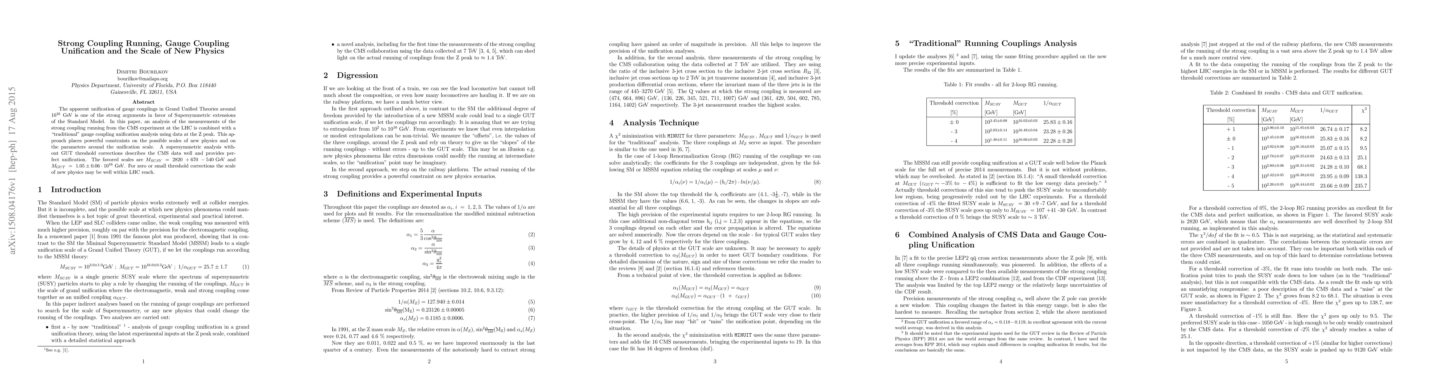 The paper presents a combined analysis of CMS strong coupling running data and traditional gauge coupling unification, providing refined constraints on supersymmetric and GUT scales.