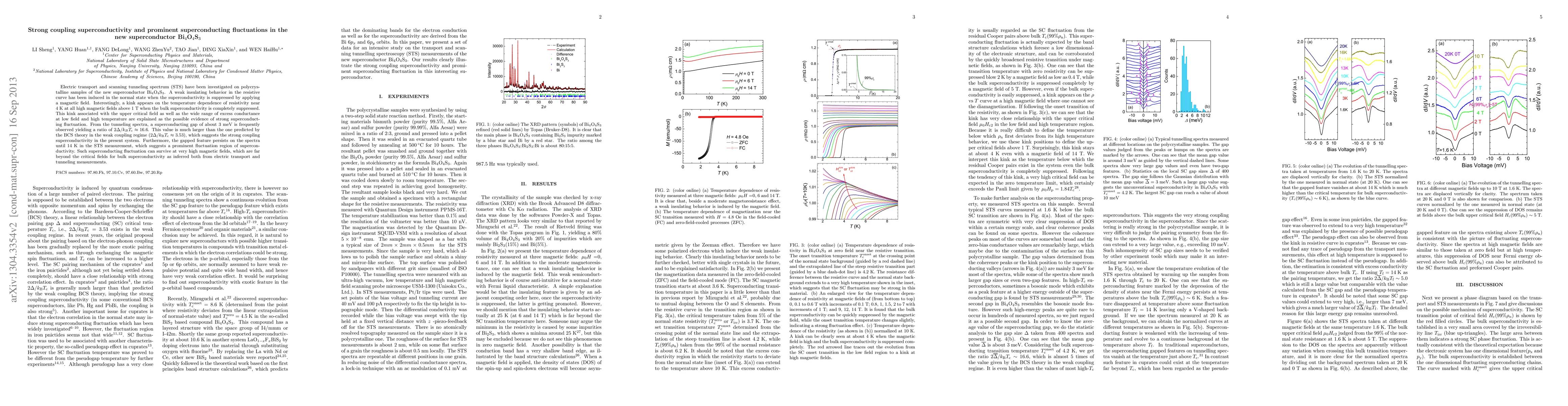 Electric transport and scanning tunneling spectrum (STS) have been investigated on polycrystalline samples of the new superconductor Bi4O4S3. A weak insulating behavior in the resistive curve has been induced in the normal state when the superconductivity is suppressed by applying a magnetic field. Interestingly, a kink appears on the temperature dependence of resistivity near 4 K at all high magnetic fields above 1 T when the bulk superconductivity is completely suppressed. This kink associated with the upper critical field as well as the wide range of excess conductance at low field and high temperature are explained as the possible evidence of strong superconducting fluctuation. From the tunneling spectra, a superconducting gap of about 3 meV is frequently observed yielding a ratio of 2\Delta/(kB*Tc) ~ 16.6. This value is much larger than the one predicted by the BCS theory in the weak coupling regime (2\Delta/(kB*Tc) ~ 3.53), which suggests the strong coupling superconductivity in the present system. Furthermore, the gapped feature persists on the spectra until 14 K in the STS measurement, which suggests a prominent fluctuation region of superconductivity. Such superconducting fluctuation can survive at very high magnetic fields, which are far beyond the critical fields for bulk superconductivity as inferred both from electric transport and tunneling measurements.