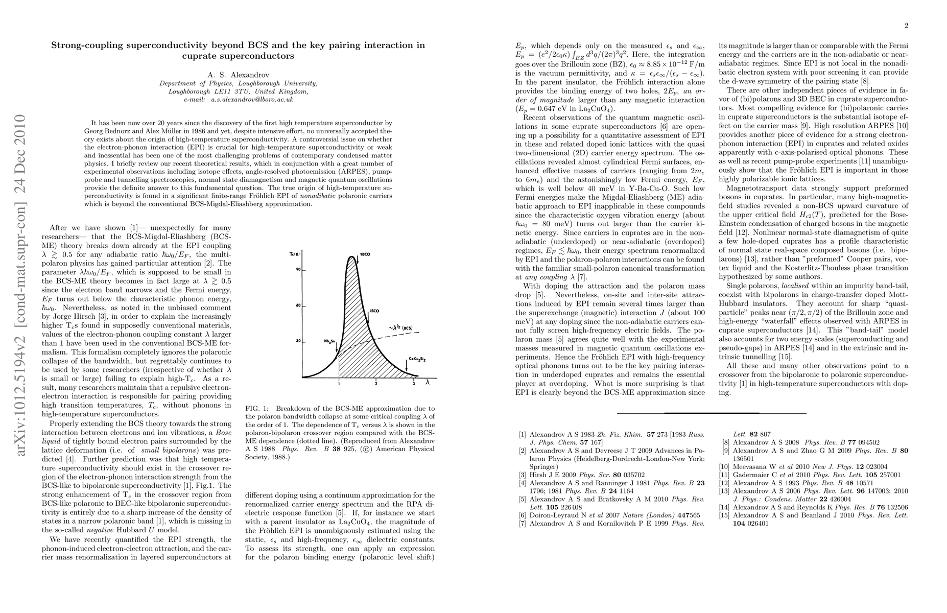 It has been now over 20 years since the discovery of the first high temperature superconductor by Georg Bednorz and Alex Mueller in 1986 and yet, despite intensive effort, no universally accepted theory exists about the origin of high-temperature superconductivity. A controversial issue on whether the electron-phonon interaction (EPI) is crucial for high-temperature superconductivity or weak and inessential has been one of the most challenging problems of contemporary condensed matter physics. I briefly review our recent theoretical results, which in conjunction with a great number of experimental observations including isotope effects, angle-resolved photoemission (ARPES), pumpprobe and tunnelling spectroscopies, normal state diamagnetism and magnetic quantum oscillations provide the definite answer to this fundamental question. The true origin of high-temperature superconductivity is found in a significant finite-range Froehlich EPI of nonadibatic polaronic carriers which is beyond the conventional BCS-Migdal-Eliashberg approximation.