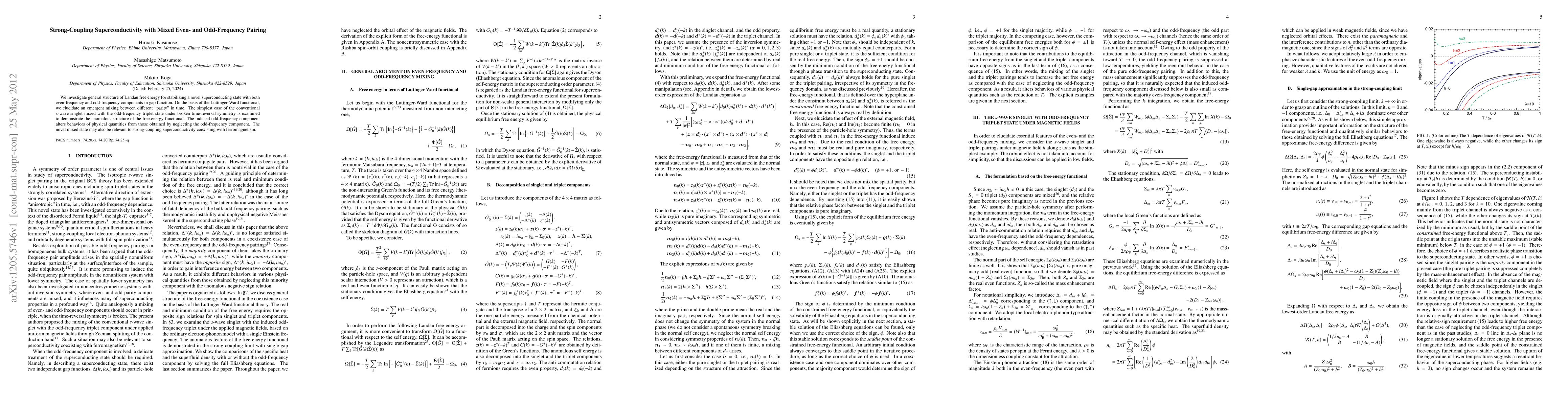 The research explores a novel superconducting state with mixed even- and odd-frequency components in its gap function, using the Luttinger-Ward functional. It demonstrates that an odd-frequency component, induced by broken time-reversal symmetry, alters physical quantity behaviors. This mixed state may be relevant to strong-coupling superconductivity coexisting with ferromagnetism.