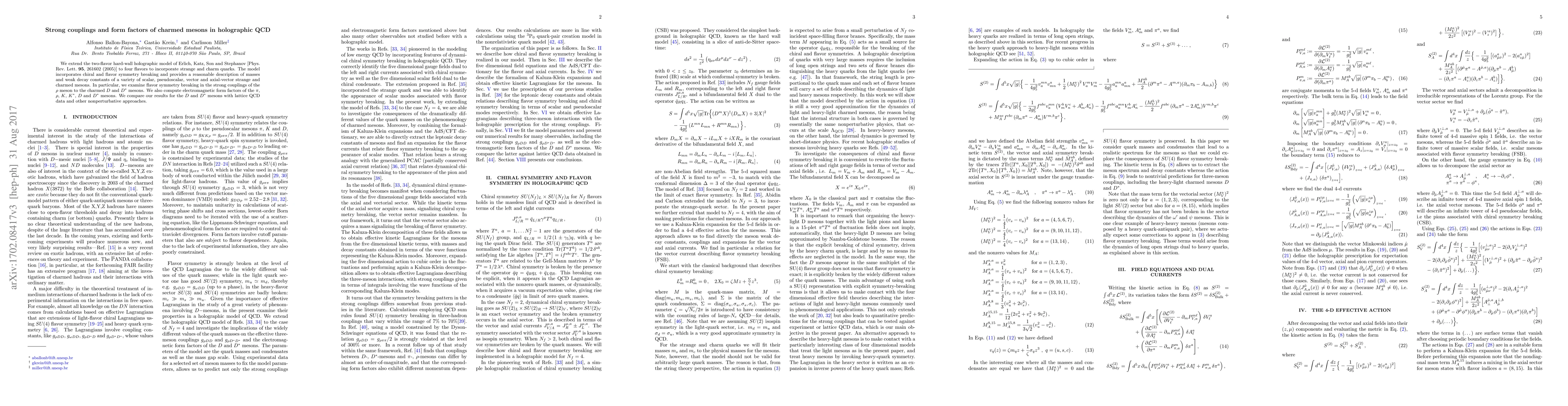 This paper extends a holographic QCD model to four flavors, incorporating strange and charm quarks, and examines the strong couplings and electromagnetic form factors of various charmed mesons. It compares the results for the $D$ and $D^*$ mesons with lattice QCD data and other nonperturbative methods.