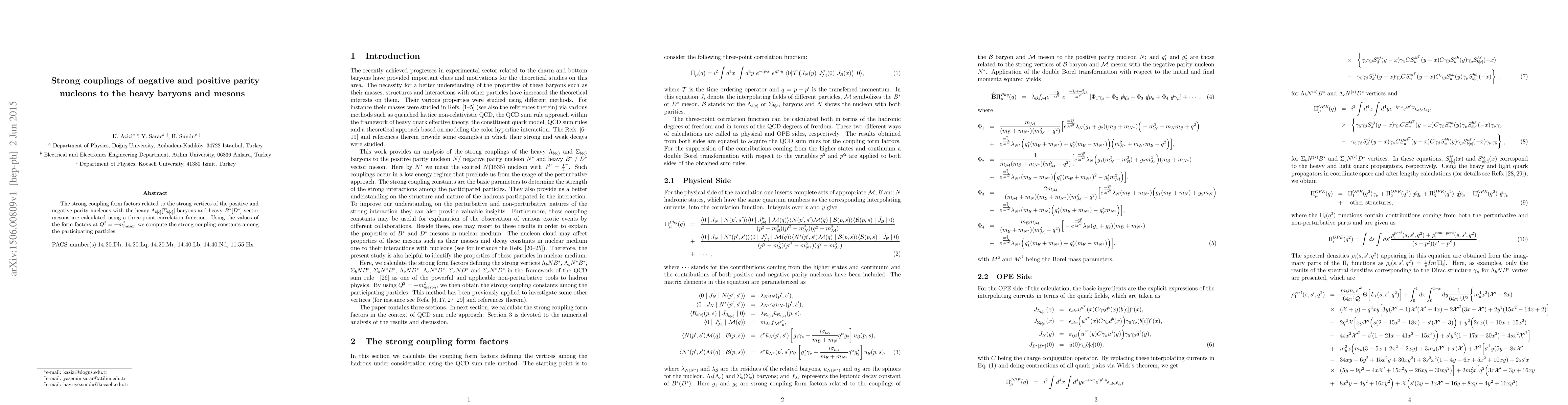 The strong coupling form factors related to the strong vertices of the positive and negative parity nucleons with the heavy $\Lambda_{b[c]}[\Sigma_{b[c]}]$ baryons and heavy $B^*[D^*]$ vector mesons are calculated using a three-point correlation function. Using the values of the form factors at $Q^2=-m^2_{meson}$ we compute the strong coupling constants among the participating particles.