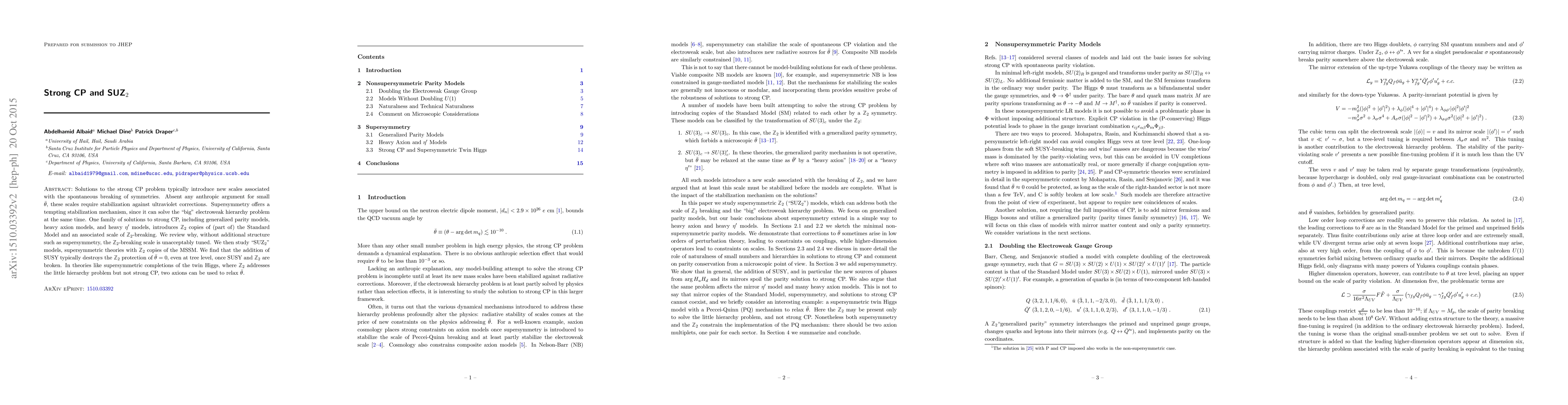 Solutions to the strong CP problem typically introduce new scales associated with the spontaneous breaking of symmetries. Absent any anthropic argument for small $\bar\theta$, these scales require stabilization against ultraviolet corrections. Supersymmetry offers a tempting stabilization mechanism, since it can solve the "big" electroweak hierarchy problem at the same time. One family of solutions to strong CP, including generalized parity models, heavy axion models, and heavy $\eta^\prime$ models, introduces $\mathbb{Z}_2$ copies of (part of) the Standard Model and an associated scale of $\mathbb{Z}_2$-breaking. We review why, without additional structure such as supersymmetry, the $\mathbb{Z}_2$-breaking scale is unacceptably tuned. We then study "SUZ$_2$" models, supersymmetric theories with $\mathbb{Z}_2$ copies of the MSSM. We find that the addition of SUSY typically destroys the $\mathbb{Z}_2$ protection of $\bar\theta=0$, even at tree level, once SUSY and $\mathbb{Z}_2$ are broken. In theories like supersymmetric completions of the twin Higgs, where $\mathbb{Z}_2$ addresses the little hierarchy problem but not strong CP, two axions can be used to relax $\bar\theta$.