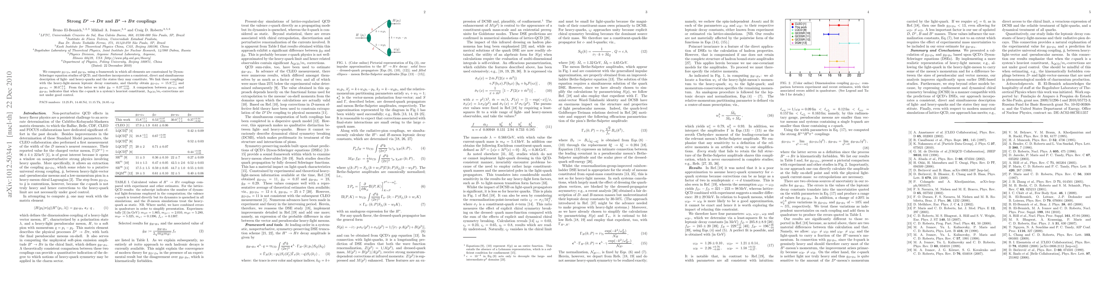 We compute g_{D* D pi} and g_{B* B pi} using a framework in which all elements are constrained by Dyson-Schwinger equation studies of QCD, and therefore incorporates a consistent, direct and simultaneous description of light- and heavy-quarks and the states they may constitute. We link these couplings with the heavy-light-meson leptonic decay constants, and thereby obtain g_{D* D pi}=15.9+2.1/-1.0 and g_{B* B pi}=30.0+3.2/-1.4. From the latter we infer \hat-g_B=0.37+0.04/-0.02. A comparison between g_{D* D pi} and g_{B* B pi} indicates that when the c-quark is a system's heaviest constituent, Lambda_{QCD}/m_c-corrections are not under good control.