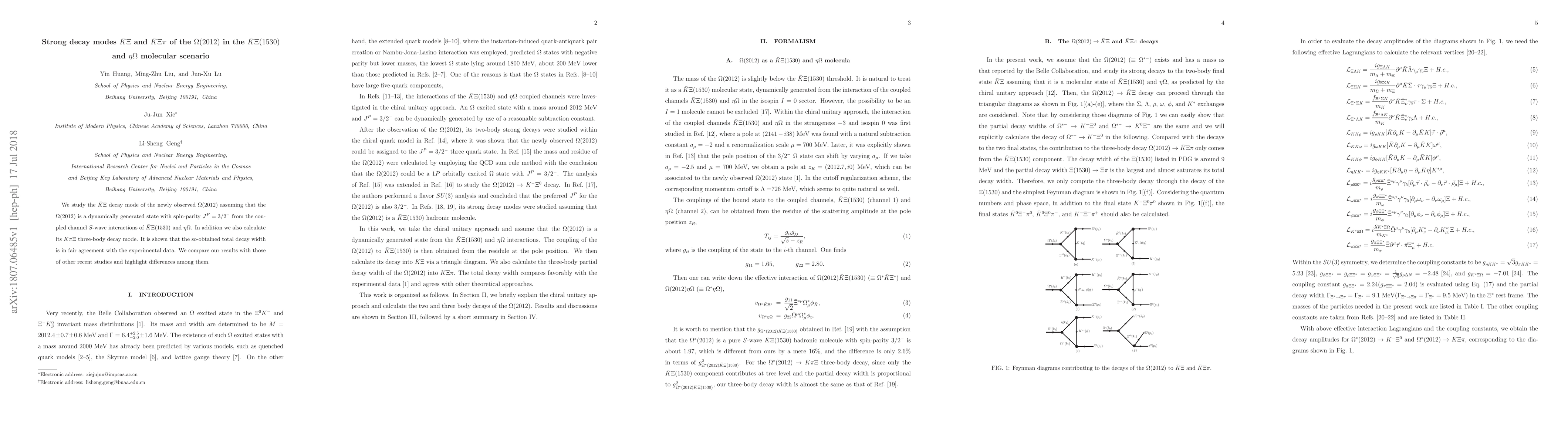This paper investigates the strong decay modes $\bar{K}\Xi$ and $\bar{K}\Xi\pi$ of the $\Omega(2012)$ particle, proposing it as a dynamically generated state from coupled channel interactions, and finds its total decay width aligns well with experimental data. It also compares its findings with other recent studies, noting discrepancies.