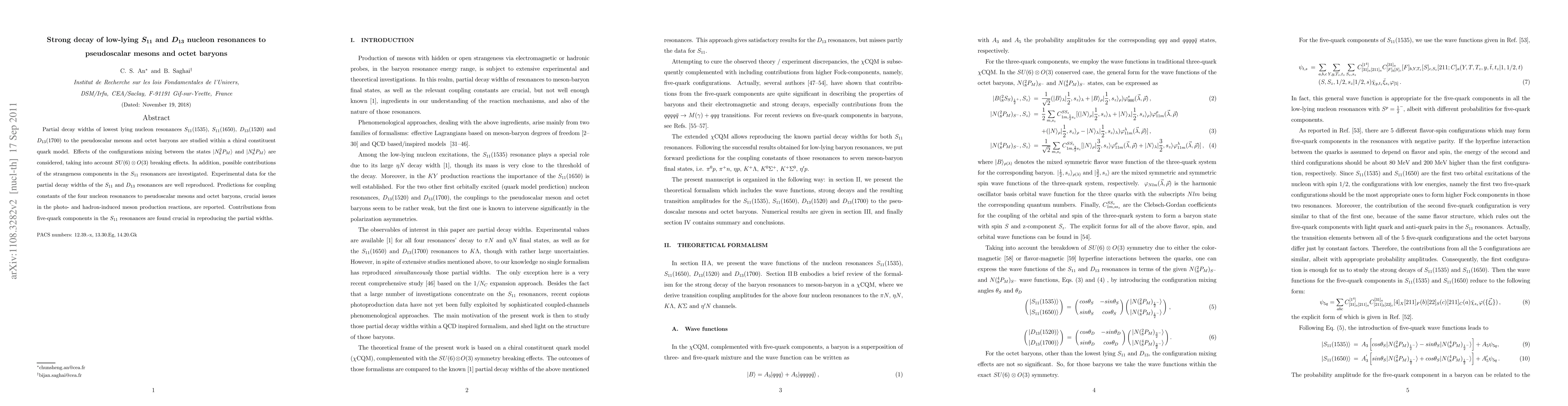 This paper investigates the partial decay widths of nucleon resonances $S_{11}$ and $D_{13}$ within a chiral constituent quark model, considering symmetry breakdown and strangeness contributions. The study reproduces experimental data and provides predictions for coupling constants relevant to meson production reactions.