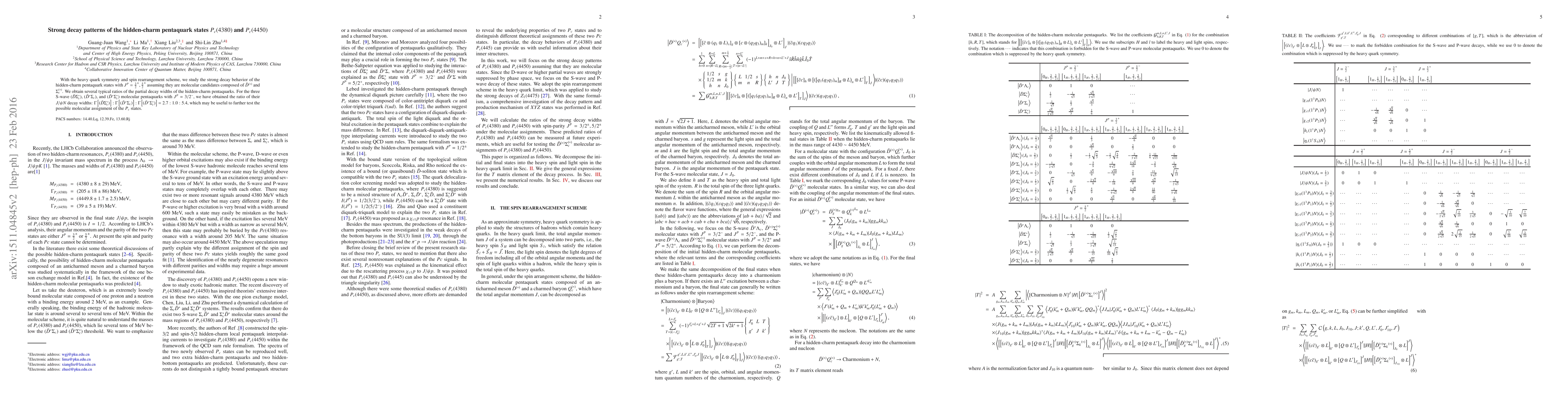 This study investigates the strong decay patterns of the hidden-charm pentaquark states $P_c(4380)$ and $P_c(4450)$ using heavy quark symmetry and spin rearrangement, assuming they are molecular candidates composed of ${\bar D}^{(\ast)}$ and ${\Sigma}_c^{(\ast)}$. The research provides a ratio of the partial decay widths, specifically $\Gamma\left[(\bar D{\Sigma^{\ast}_c})\right]:\Gamma\left[({\bar D}^{\ast}{\Sigma}_c)\right]:\Gamma\left[({\bar D}^{\ast}{\Sigma^{\ast}_c})\right]=2.7:1.0:5.4$, which may aid in confirming the molecular nature of these pentaquark states.