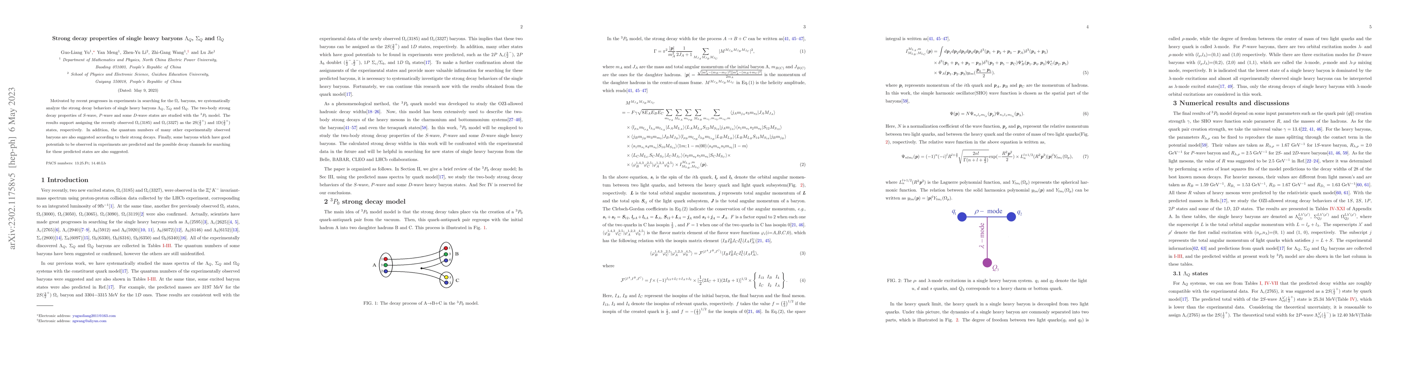 The research systematically analyzes the strong decay behaviors of single heavy baryons Λ_Q, Σ_Q, and Ω_Q using the 3P0 model, distinguishing numerous experimental states without spin-parity assignments.