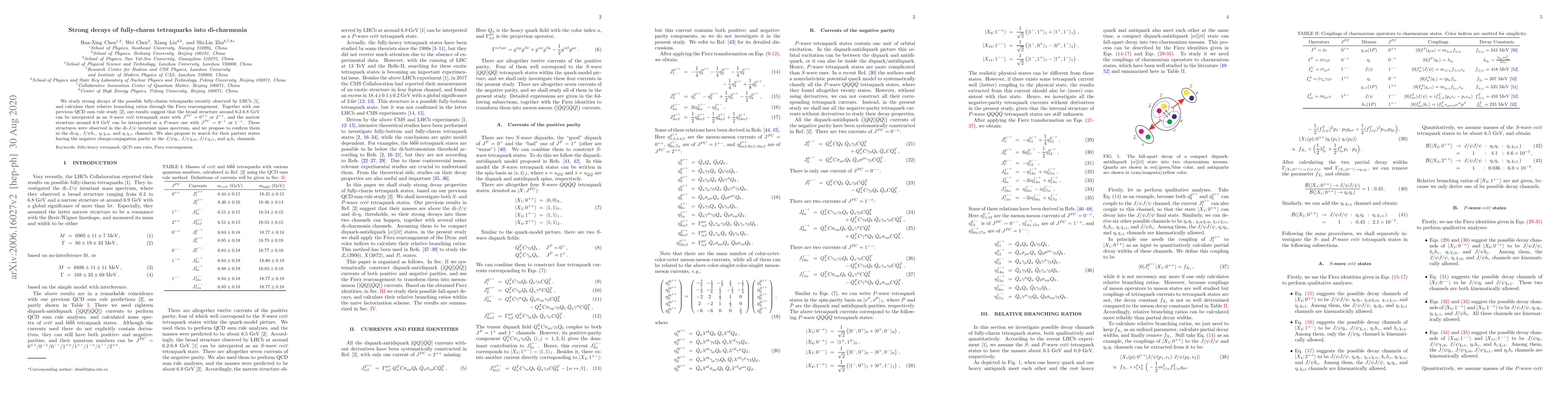 Researchers investigated the strong decays of fully-charm tetraquarks into di-charmonia, proposing a possible tetraquark state with specific quantum numbers that can be confirmed through further experiments.
