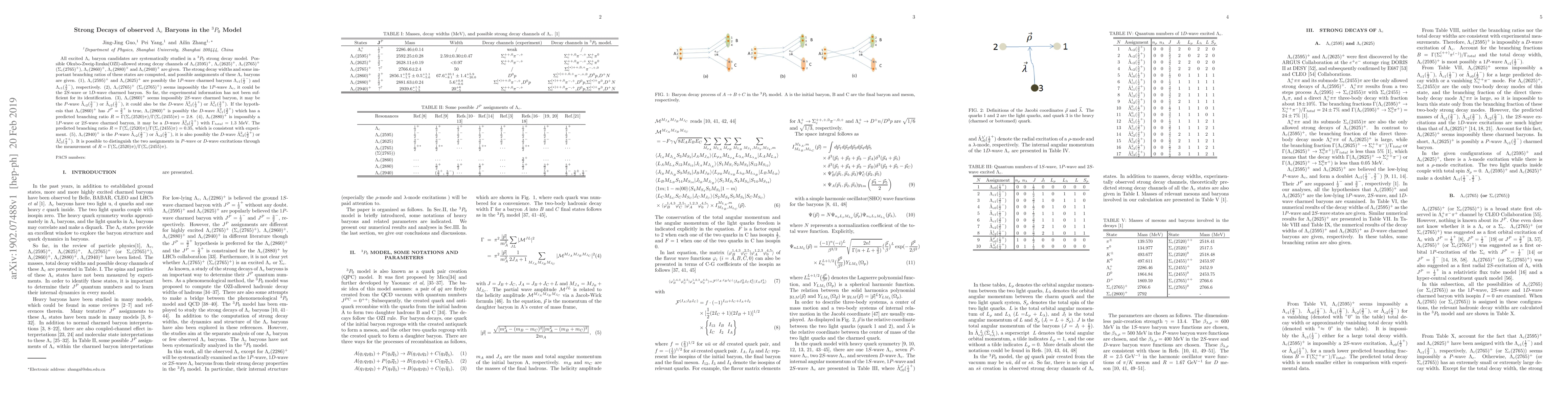 This paper computes strong decay widths and branching ratios for several $\Lambda_c$ baryons using the $^3P_0$ model, proposing possible quantum assignments. It suggests $\Lambda_c(2860)^+$ could be the $D$-wave $\check\Lambda_{c1}^{2}(\frac{3}{2}^+)$ with a predicted branching ratio of 2.8, and $\Lambda_c(2880)^+$ may be the $D$-wave $\check\Lambda_{c3}^{2}(\frac{5}{2}^+)$ with a consistent branching ratio of 0.35.