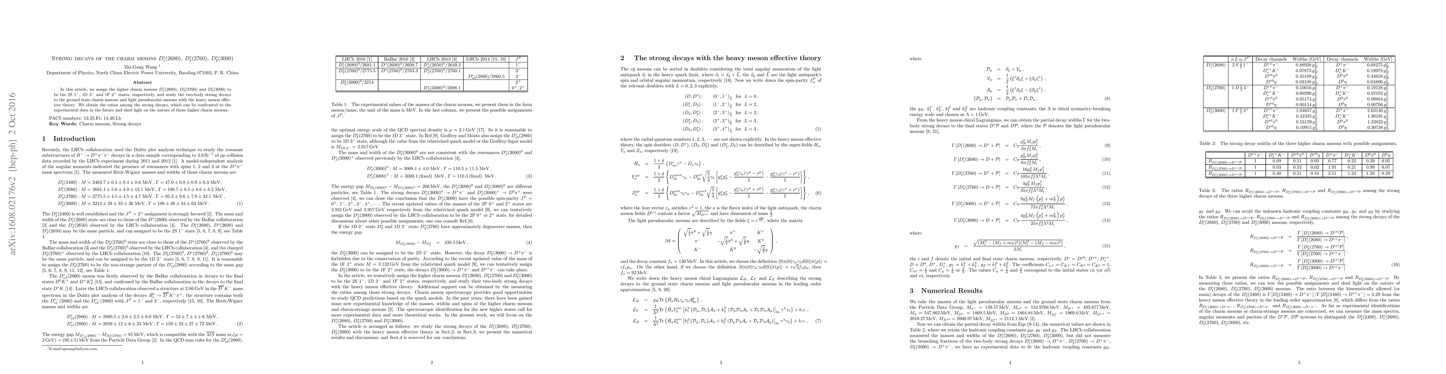 This study assigns the charmed mesons D*1(2680), D3*(2760), and D2*(3000) to specific quantum states and analyzes their two-body strong decays into ground state charmed mesons and light pseudoscalar mesons using the heavy meson effective theory. It derives ratios for these strong decay processes, which can be compared to future experimental data to understand the nature of these higher charmed mesons.