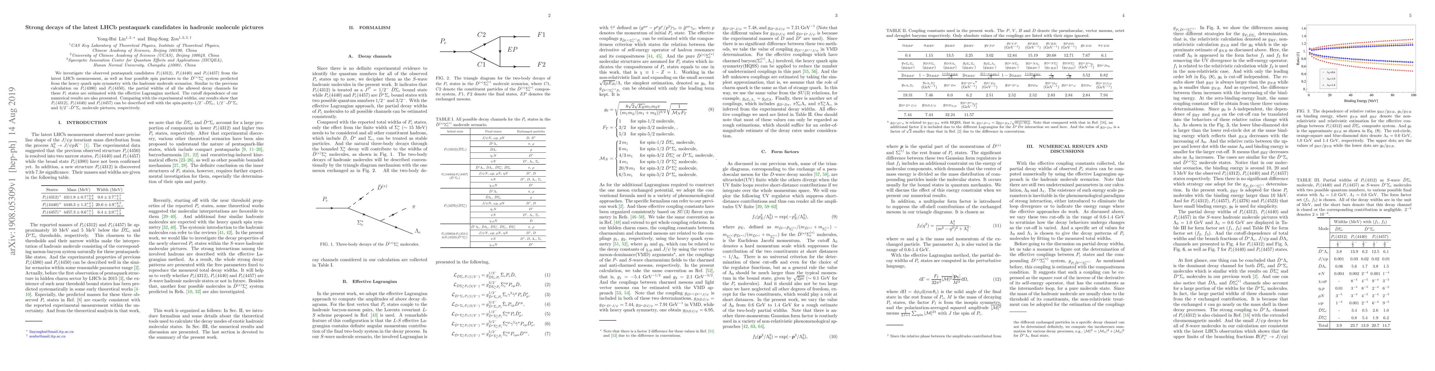 We investigate the observed pentaquark candidates $P_c(4312)$, $P_c(4440)$ and $P_c(4457)$ from the latest LHCb measurement, as well as four possible spin partners in the $\bar{D}^{(*)}\Sigma_c^*$ system predicted from the heavy quark spin symmetry with the hadronic molecule scenarios. Similar to the previous calculation on $P_c(4380)$ and $P_c(4450)$, the partial widths of all the allowed decay channels for these $P_c$ states are estimated with the effective Lagrangian method. The cutoff dependence of our numerical results are also presented. Comparing with the experimental widths, our results show that $P_c(4312)$, $P_c(4440)$ and $P_c(4457)$ can be described well with the spin-parity-$1/2^-$-$\bar{D}\Sigma_c$, $1/2^-$-$\bar{D}^*\Sigma_c$ and $3/2^-$-$\bar{D}^*\Sigma_c$ molecule pictures, respectively.