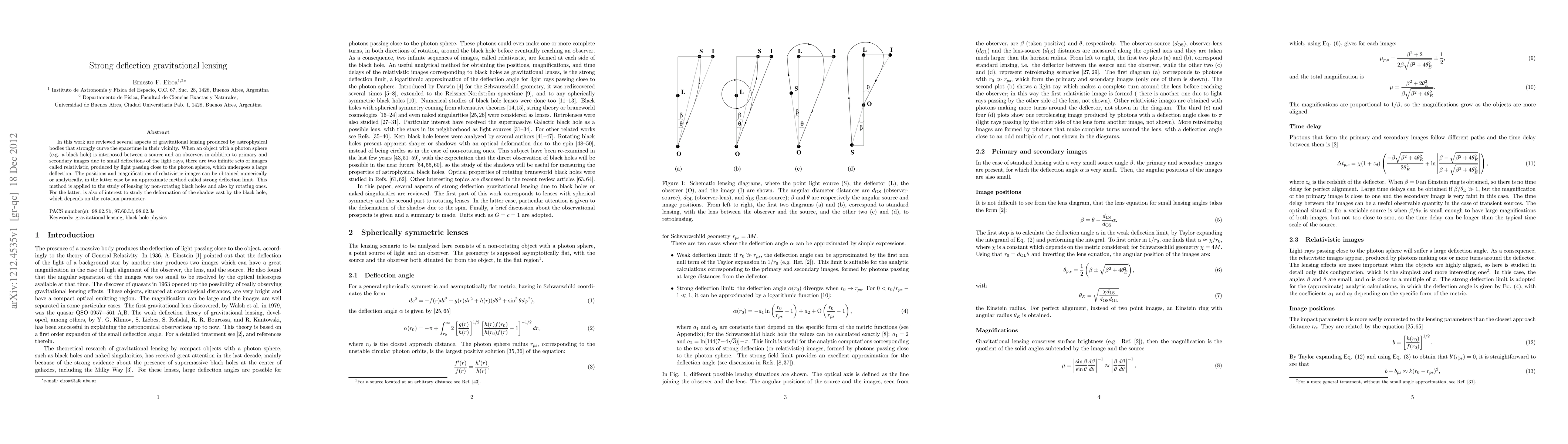 This paper reviews gravitational lensing effects from astrophysical bodies that significantly curve spacetime, focusing on strong deflections near photon spheres, such as black holes. It examines both primary and secondary images, as well as relativistic images produced by light passing near the photon sphere, using analytical and numerical methods.