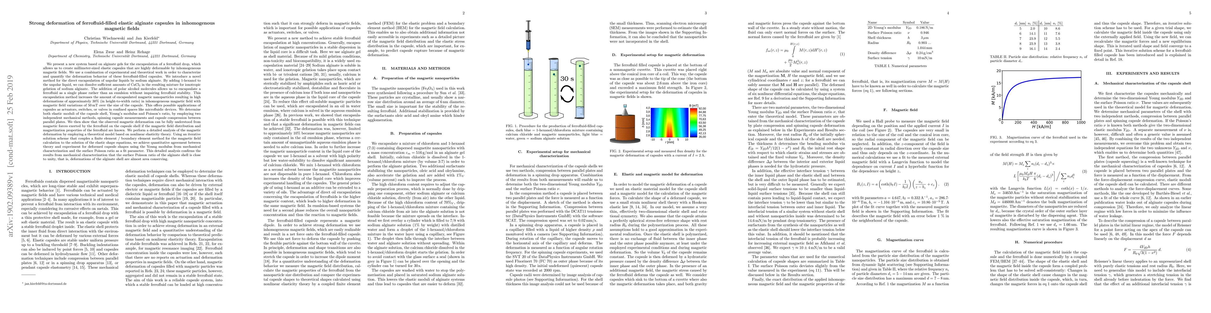 This paper explores a novel system of ferrofluid-filled alginate capsules that can be strongly deformed by inhomogeneous magnetic fields, enabling potential applications as actuators or valves. The study combines experimental and theoretical methods to characterize the deformation behavior, determining the elastic moduli and confirming that the deformations are driven by magnetic forces on the capsule shell.