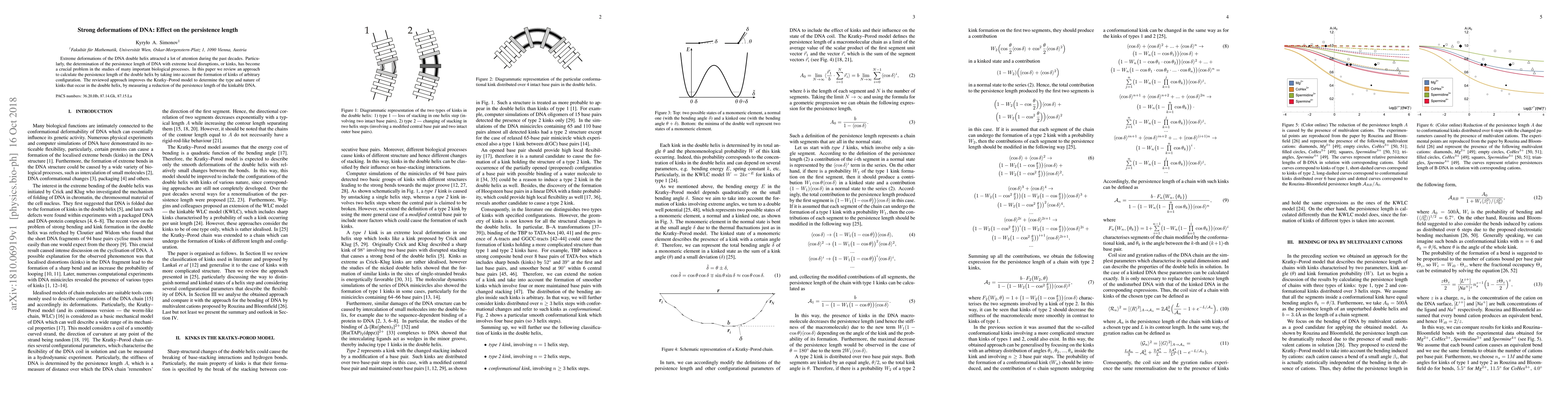 This paper reviews an advanced method to calculate the persistence length of DNA with extreme deformations, focusing on the formation of kinks. It improves upon the Kratky-Porod model to better understand how local disruptions affect the persistence length of the DNA double helix.