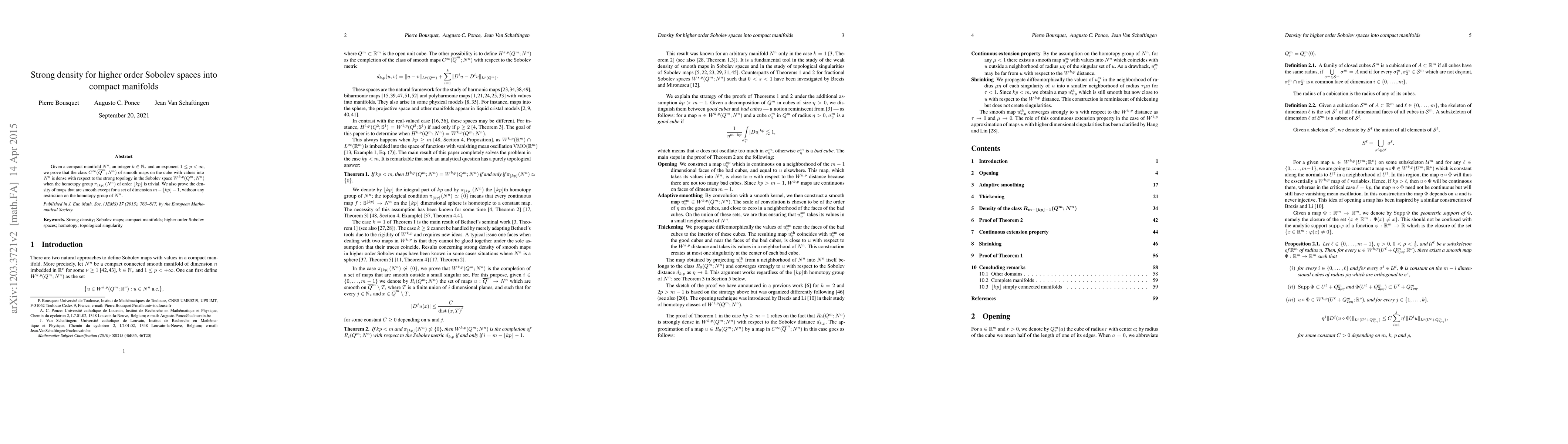 Given a compact manifold $N^n$, an integer $k \in \mathbb{N}_*$ and an exponent $1 \le p < \infty$, we prove that the class $C^\infty(\overline{Q}^m; N^n)$ of smooth maps on the cube with values into $N^n$ is dense with respect to the strong topology in the Sobolev space $W^{k, p}(Q^m; N^n)$ when the homotopy group $\pi_{\lfloor kp \rfloor}(N^n)$ of order $\lfloor kp \rfloor$ is trivial. We also prove the density of maps that are smooth except for a set of dimension $m - \lfloor kp \rfloor - 1$, without any restriction on the homotopy group of $N^n$